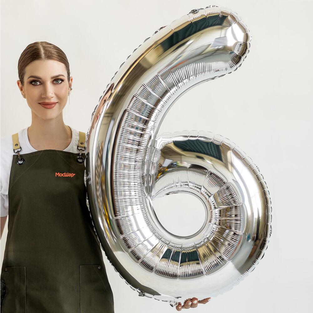 Воздушный шар цифра 6 серебро с гелием - 100см