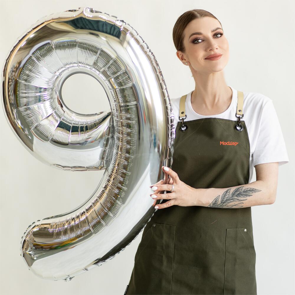 Воздушный шар цифра 9 серебро с гелием - 100см