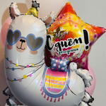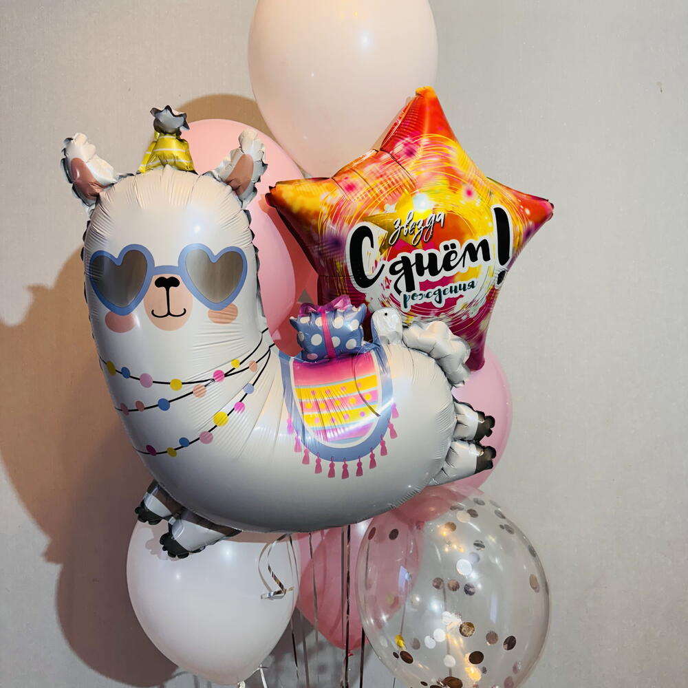 Воздушные шарики на день рождения Лама 7 стандартных Шариков, размером 30 см 1 шарик с конфетти, 30 см 1 звезда фольгированная, 45 см 1 лама, фольгированная 80 мм