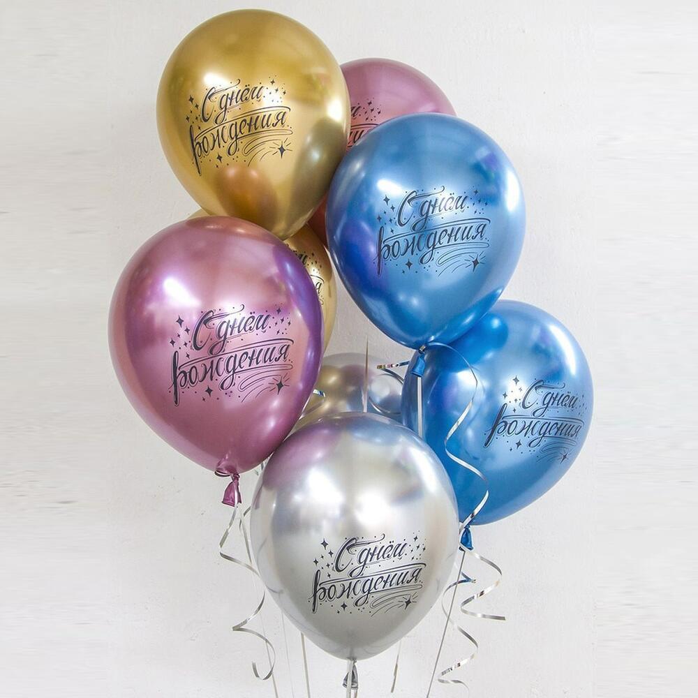Воздушные шары 8 шт, с гелием С днем рождения хром Искры