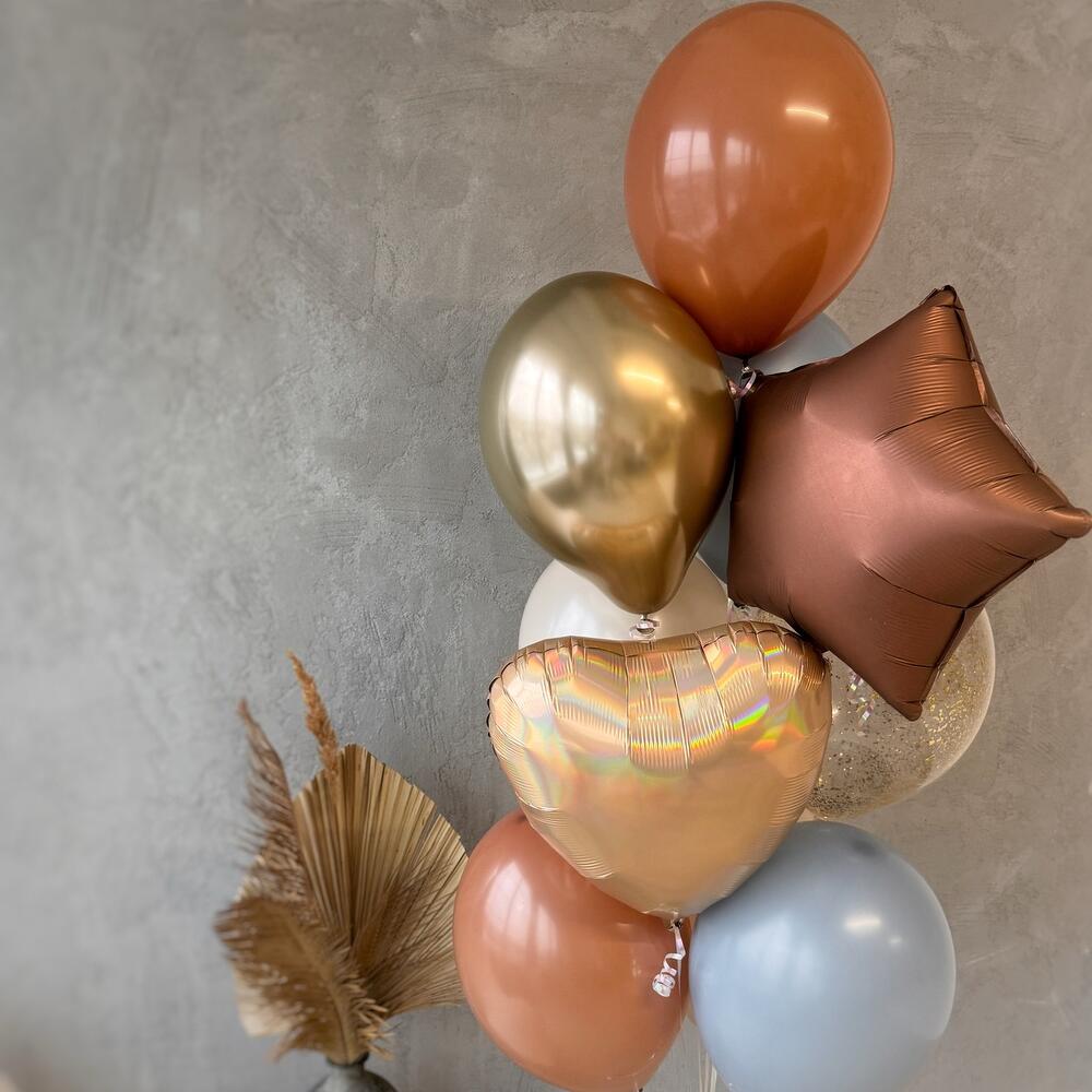 В наборе: Звезда Сердце Шар с конфетти Хромированный шар 6 латексных Шаров