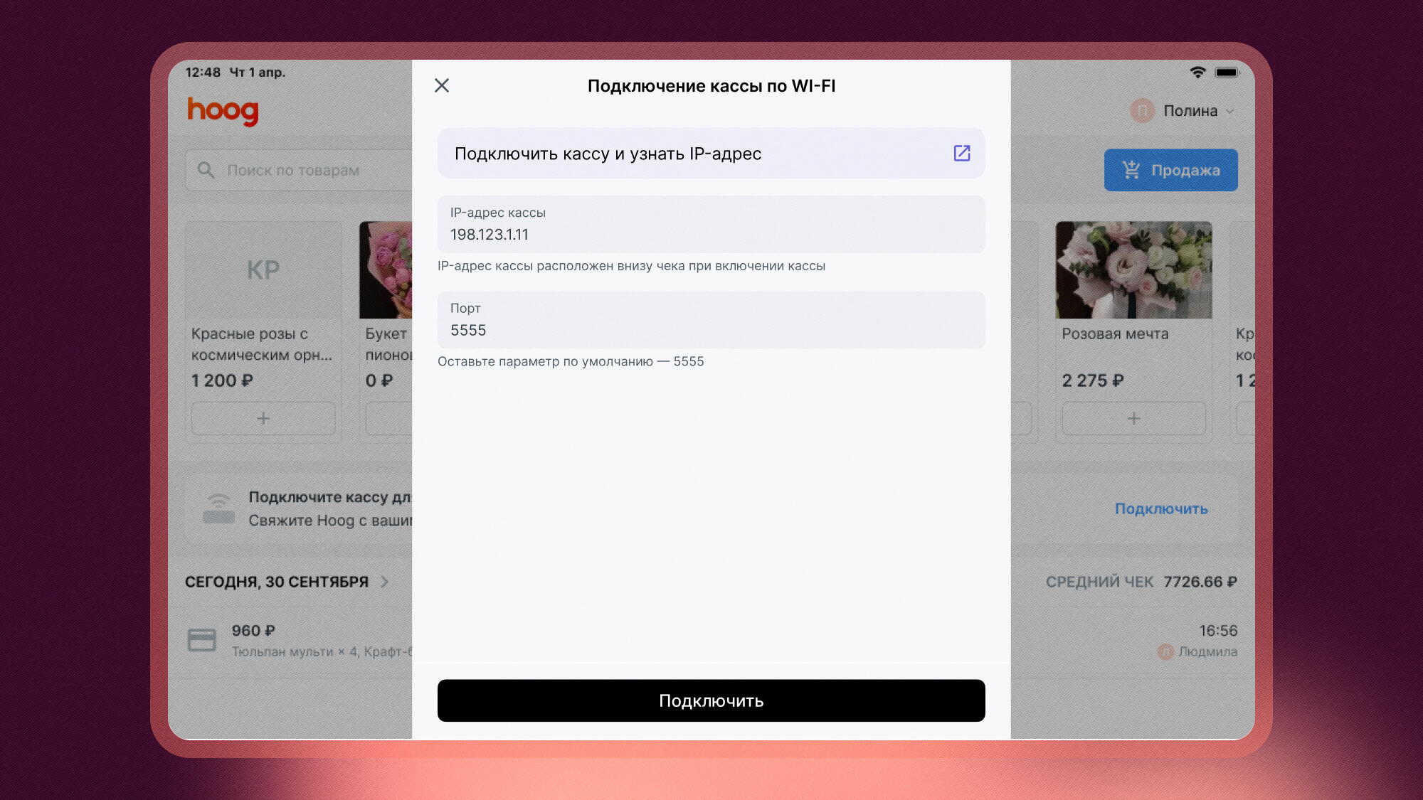 - Подключение касс АТОЛ по Wi‑Fi.