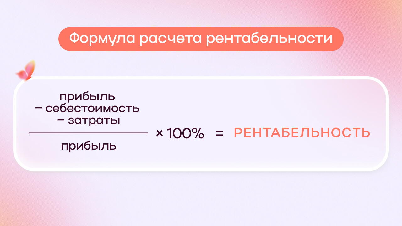 Во время установки цен нужно ориентироваться на рентабельность, то есть на то, насколько прибыльно продавать конкретный товар. Напомним формулу расчета: