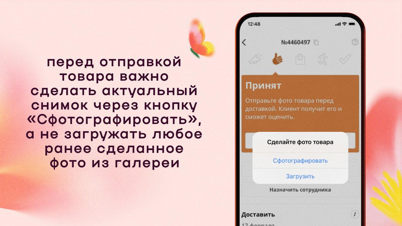 - Добавляйте фото не позднее чем за 15–20 минут до начала доставки. У клиента должно быть время оставить оценку или дать обратную связь.