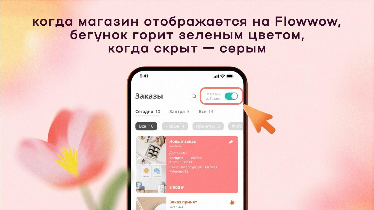 Если заказ не будет принят в течение 7 минут, вам позвонит робот или сотрудник Flowwow с напоминанием. Клиент может отменить заказ, если ожидание затянется.