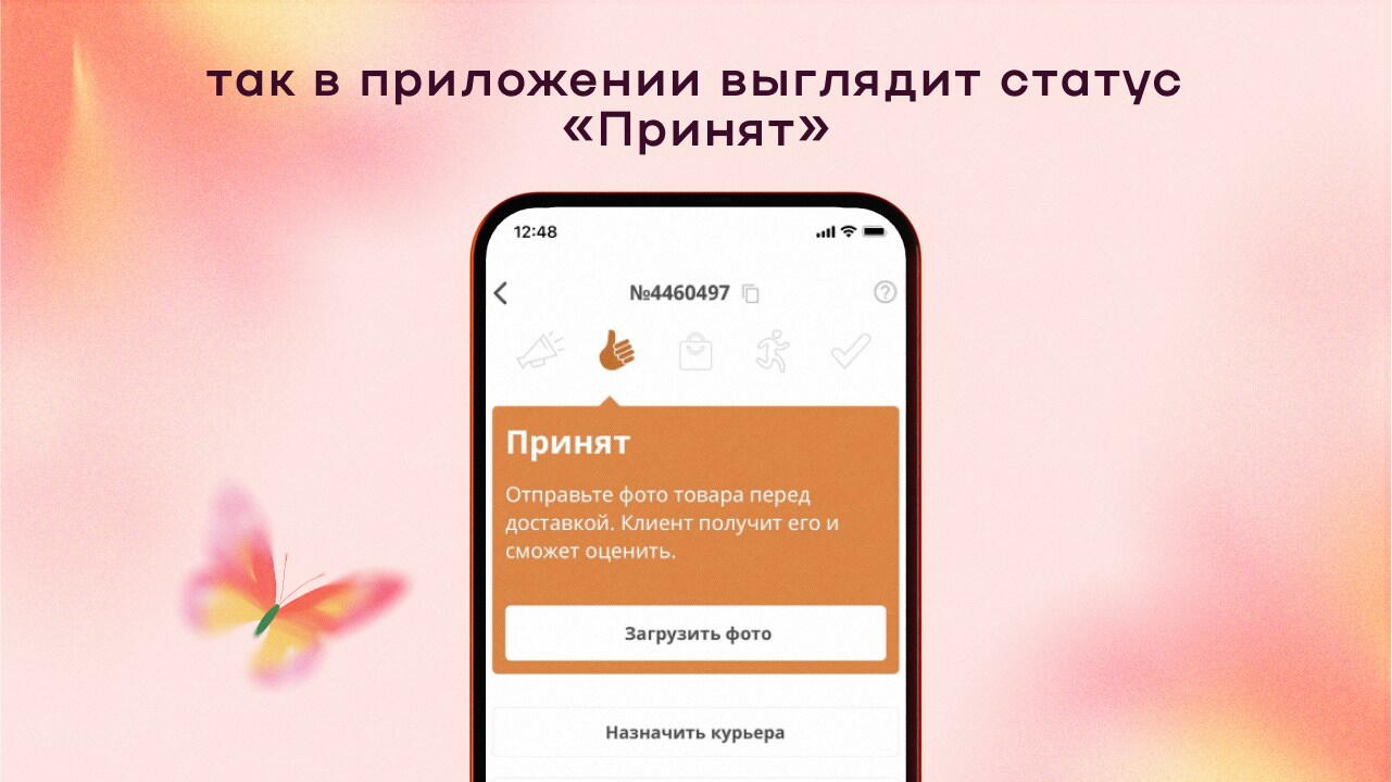 - Если покупки доставляет курьер из вашего магазина, он должен самостоятельно поменять статус в приложении после доставки.
