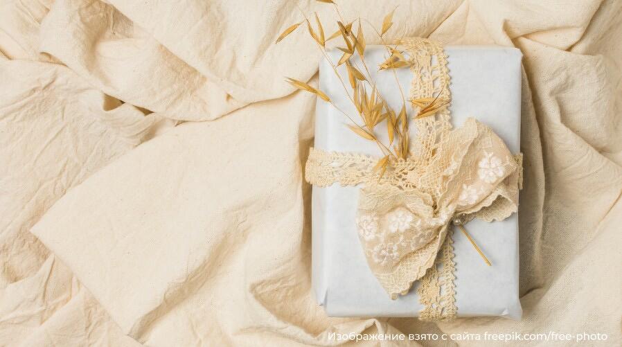 Завернуть подарок в ткань вместо бумаги — оригинально и модно. Холщовое полотно или лен — подходящая упаковка для экоподарка. Атласная, шелковая или бархатная ткань подчеркнут утонченность презента.