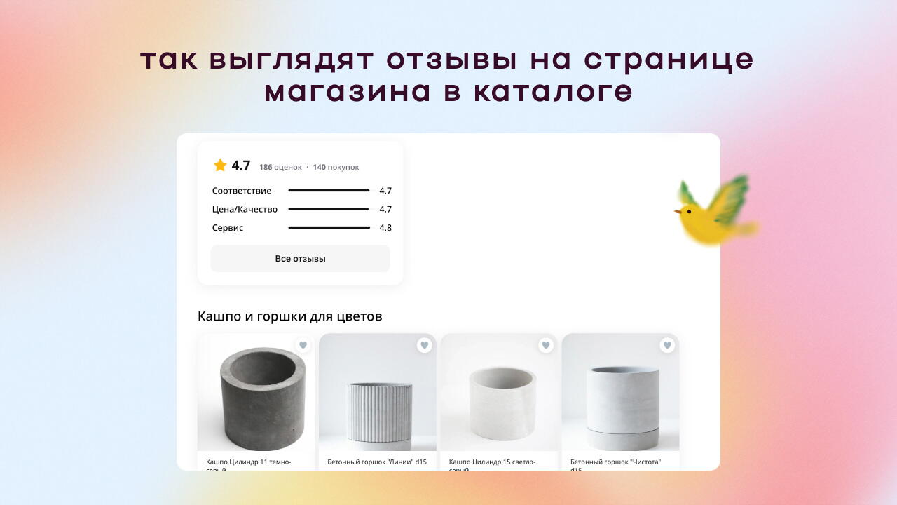 На Flowwow рейтинг считается по пятибалльной шкале — он отображается в карточке каждого селлера и виден в выдаче всем клиентам платформы. По величине рейтинга человек принимает решение, стоит ли доверять продавцу.