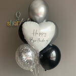 Воздушные шары состав набора: В набор входит - шар сердце с индивидуальной надписью -2 черных шара -3 хром серебро -1 шар с конфетти Цвет шаров можно заменить по вашему желанию. Все гелиевые шары с обработкой (обработаны изнутри составом Нi-Flоаt) для длительного полета. Шарики доставляются в транспортированном пакете, что обеспечивает их сохранность.