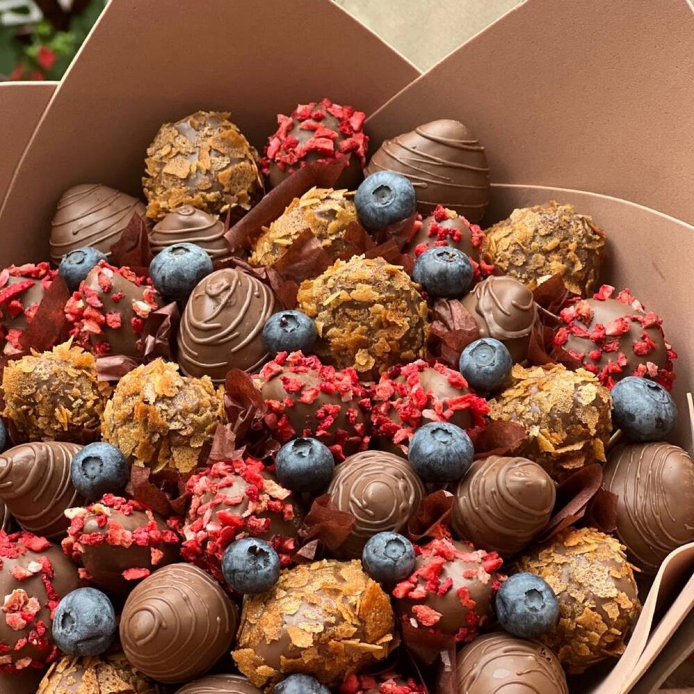 Blueberry - 30 gr. Morangos com chocolate - 400 gr.