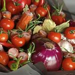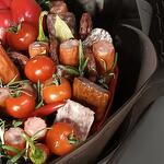 Pimenta búlgara - 1 un. Pimenta Malagueta - 5 un. Tomate cereja - 150 gr. Queijo fumado - 200 gr. Folhas de louro - 20 gr. alho natural - 2 un. pacote de alecrim - 1 un. pacote de salsicha fina - 95 gr. material de embalagem - 600 gr. fuet - 320 gr. гродно премиум - 450 gr. охотничьи колбаски премиум - 130 gr. фиолетовый лук - 2 un.