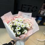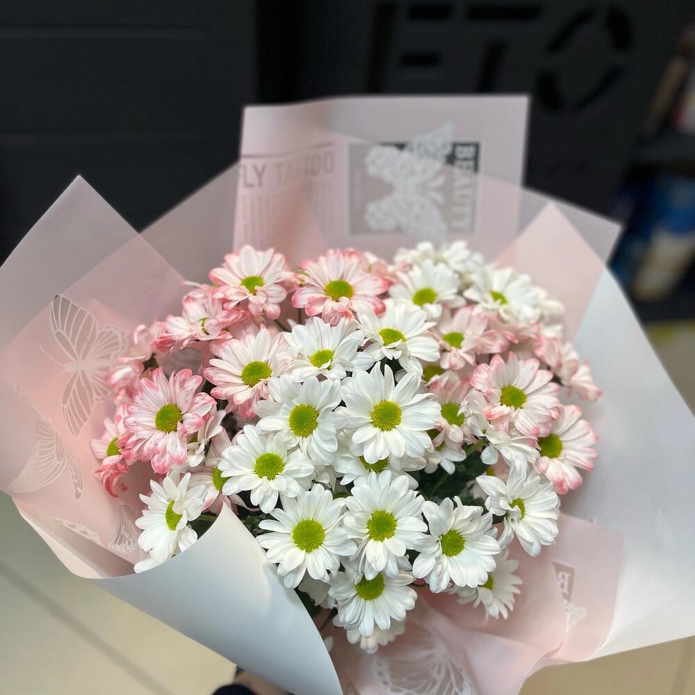 Букет из бело-розовой хризантемы ромашковой, состоящий из семи великолепных цветков, – это воплощение нежности и очарования. Каждый лепесток, окрашенный в деликатные оттенки белого и розового, словно тронут кистью самой природы. Ромашковидная форма хризантем придает им легкость и беззаботность, напоминая о летнем поле, усыпанном цветами. Этот букет станет прекрасным подарком для выражения самых теплых чувств: любви, благодарности, симпатии. Он идеально подходит для любого случая – будь то день рождения, юбилей или просто знак внимания дорогому человеку. Бело-розовый оттенок хризантем символизирует чистоту и невинность, а также зарождающиеся чувства. Семь цветков в букете – это символ гармонии и удачи. Подарите этот букет, и он наполнит жизнь получателя радостью и красотой, оставив в его сердце светлый след.