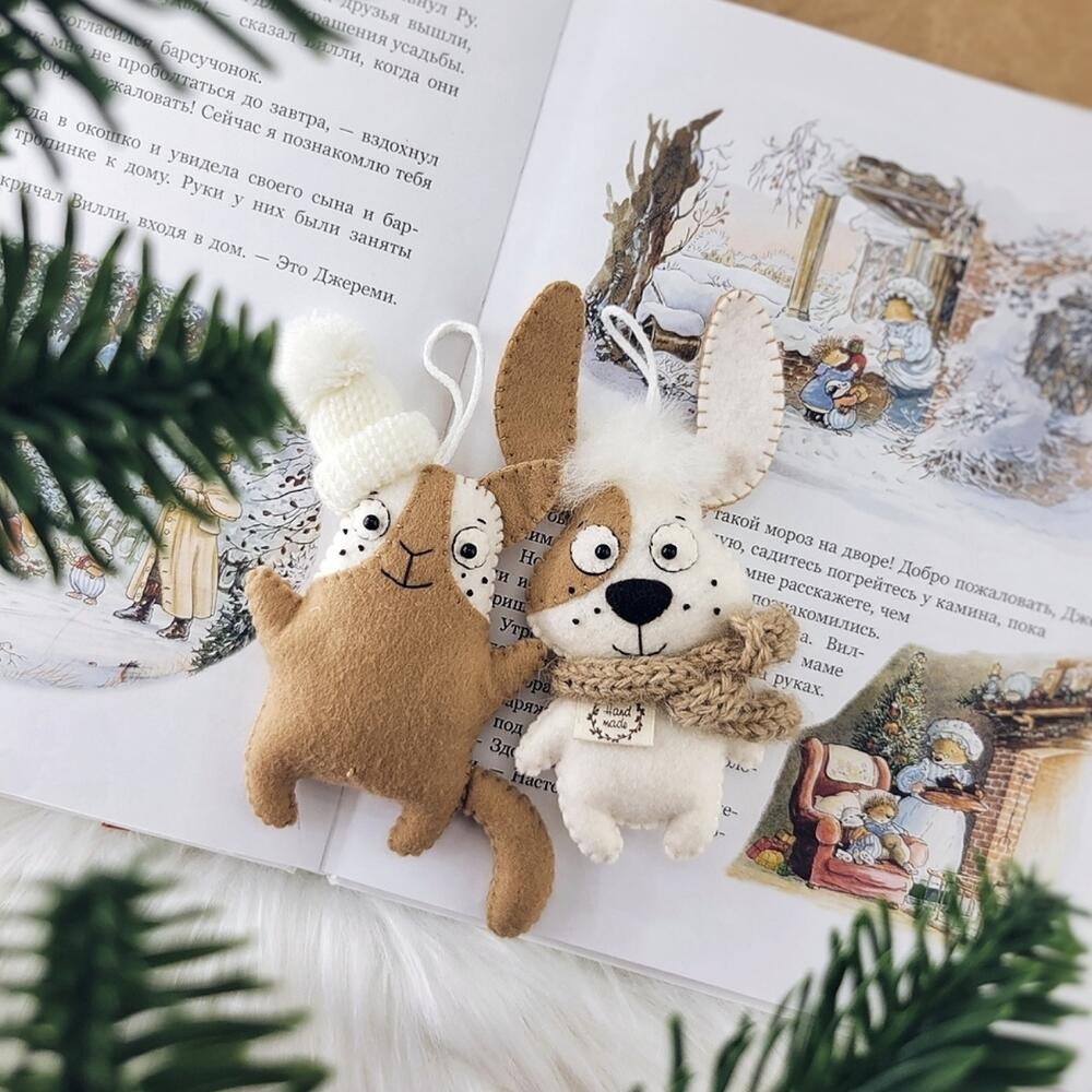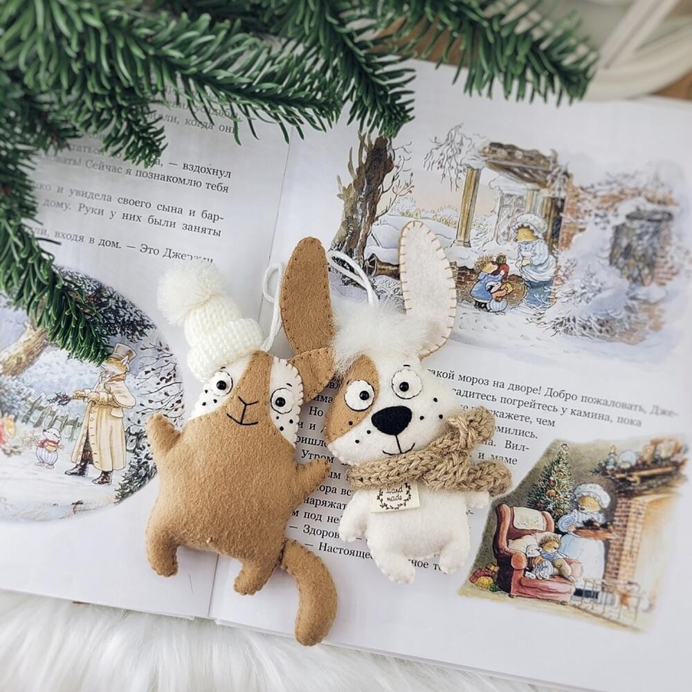Набор ёлочных игрушек ручной работы Символ года 2023 Кот и кролик
