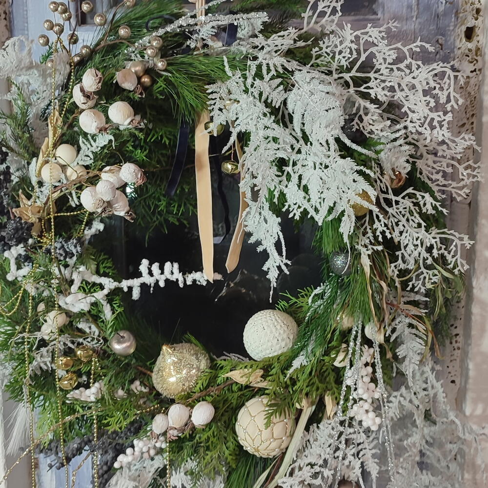 Бусы новогодние Ленты бархатные Декоративный шиповник Аспарагус стабилизированный Сосульки Мережка Туя Основа для венка Пихта Ягоды декоративные Шары новогодние Нобилис