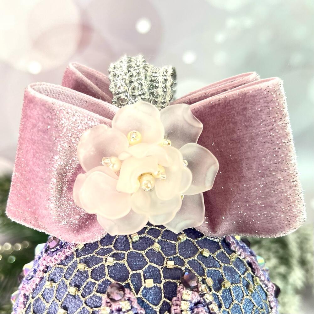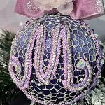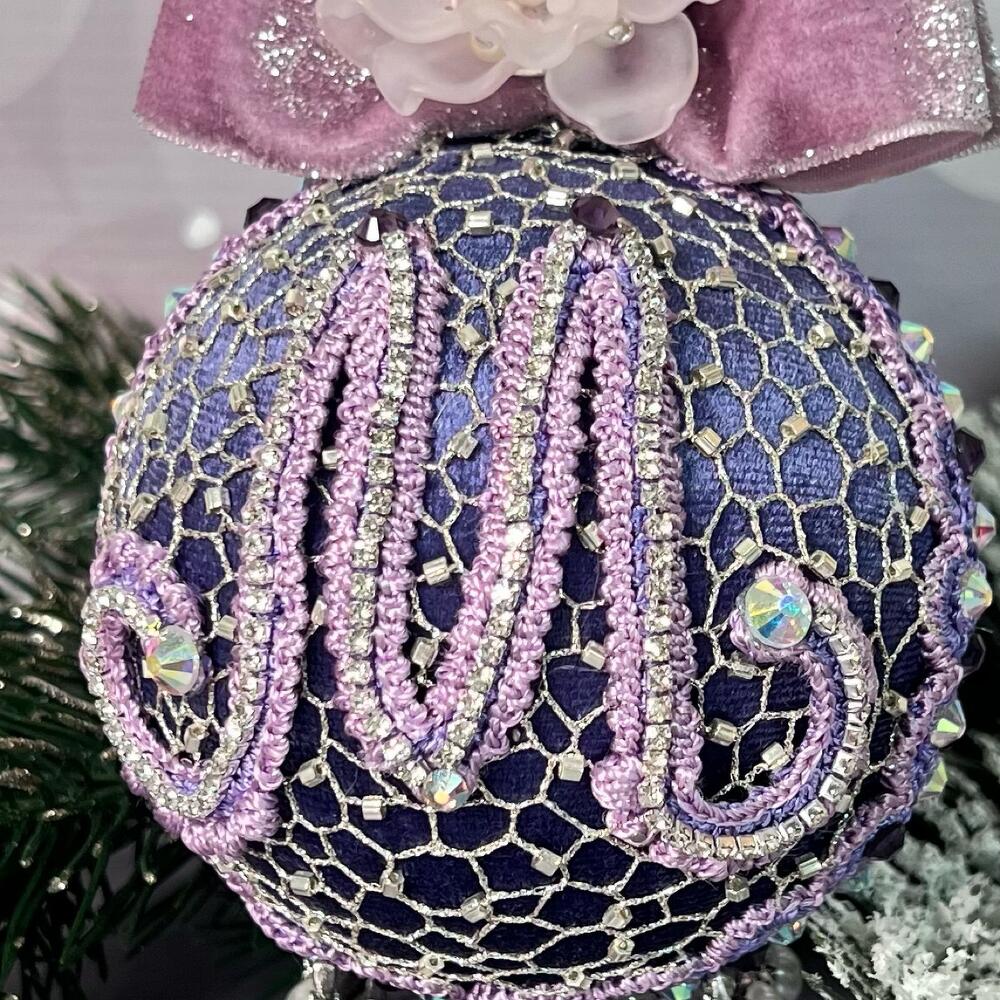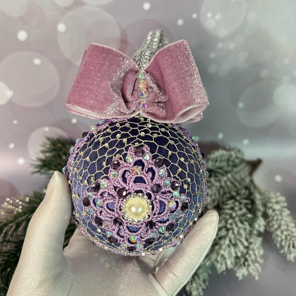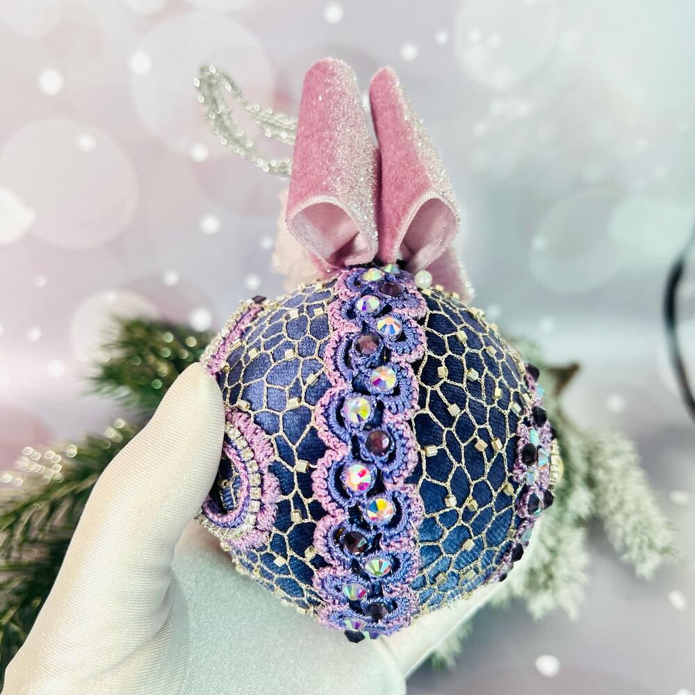 Шар бархатный розово-сиреневый в технике ирландское кружево