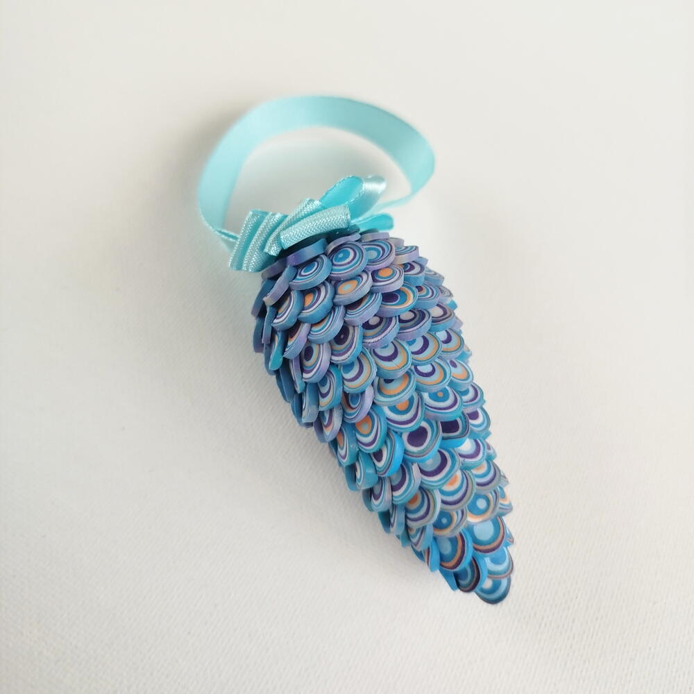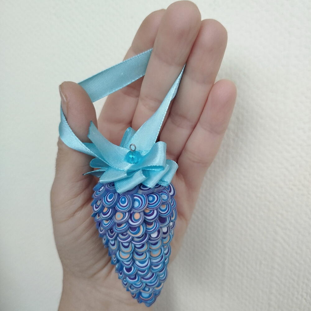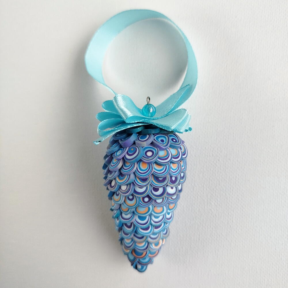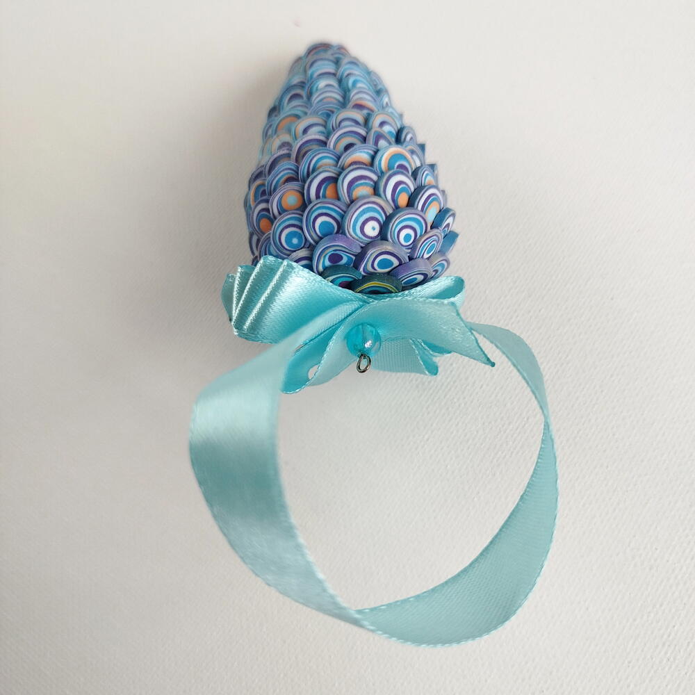 Синяя шишка - eлочное украшение из полимерной глины