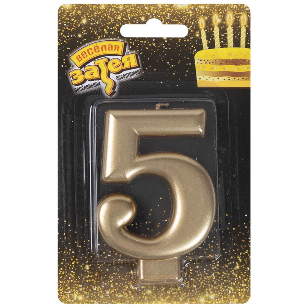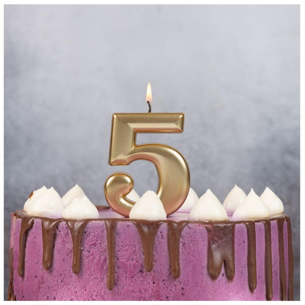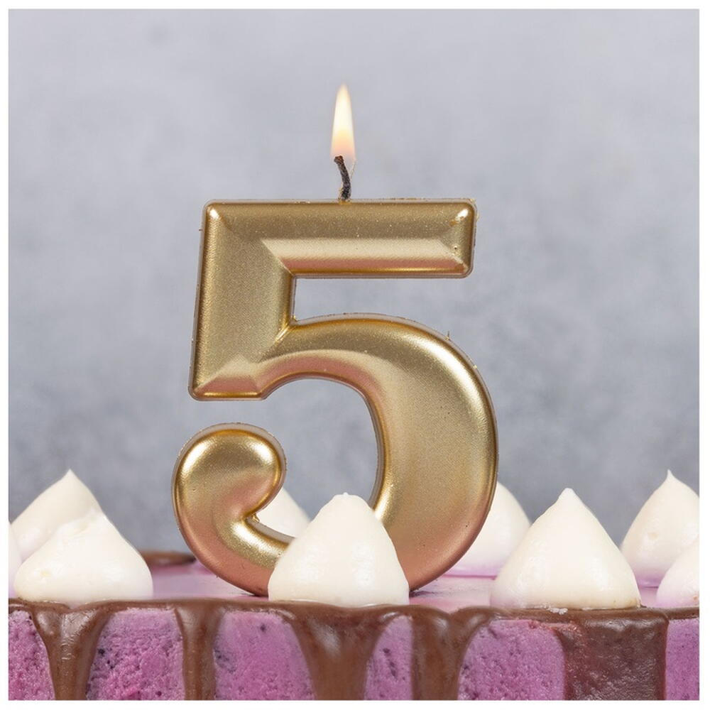 Декоративное украшение стола. Золотая Свеча в форме цифры 5. Отличное решение для декорирования торта, десерта ко дню рождения или юбилею.
