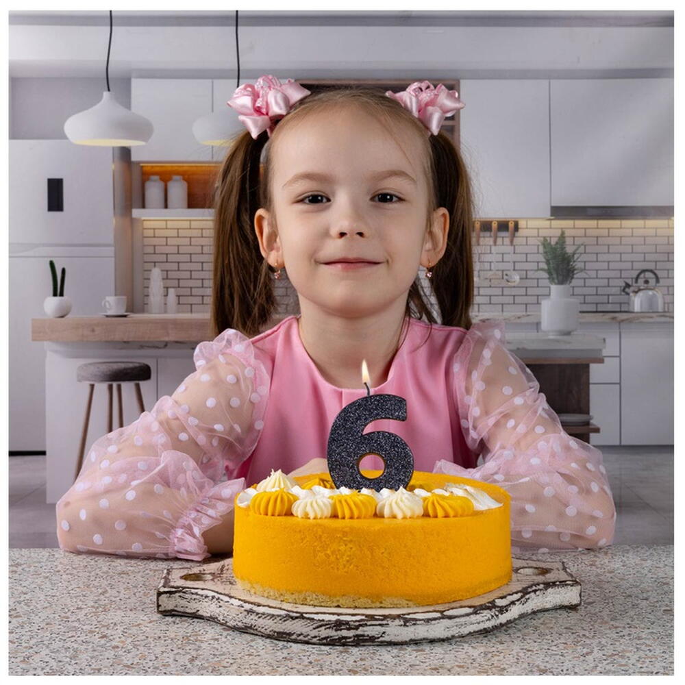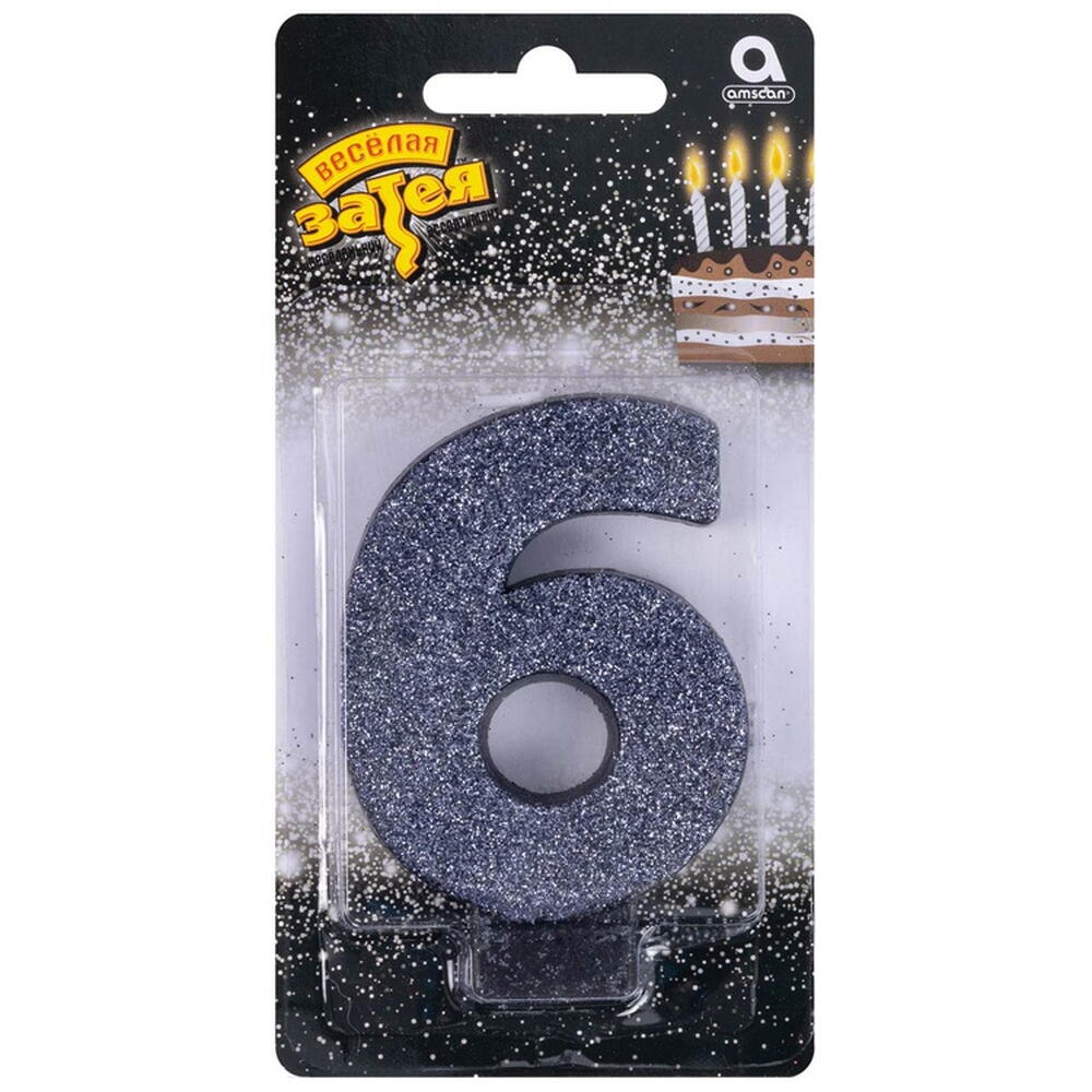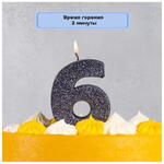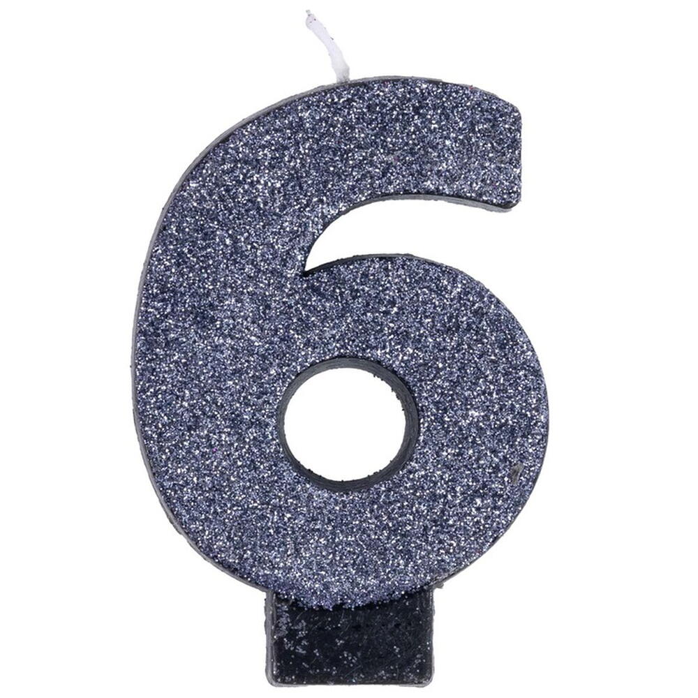 Свеча -цифра "6" Черная глиттер