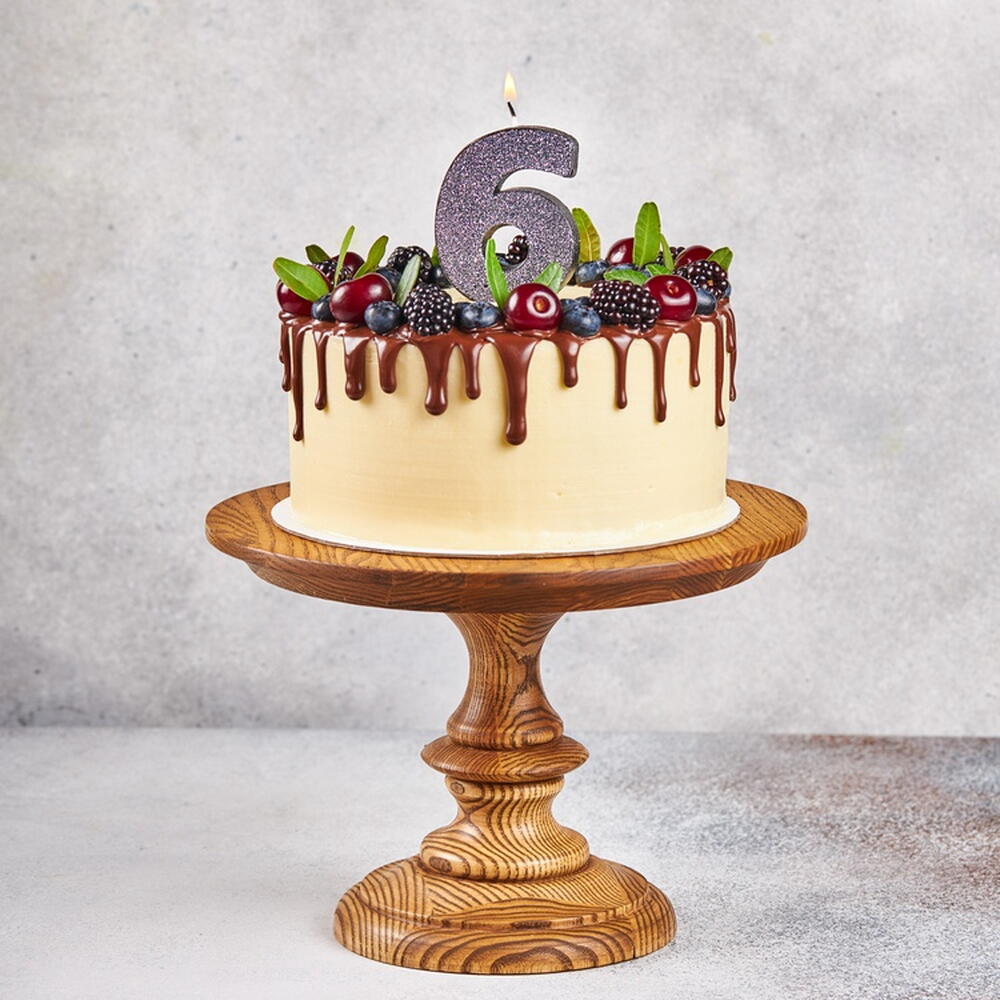 Декоративное украшение стола. Блестящая черная свеча в форме цифры 6. Отличное решение для декорирования торта, десерта ко дню рождения или юбилею.