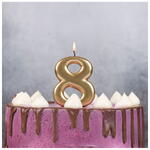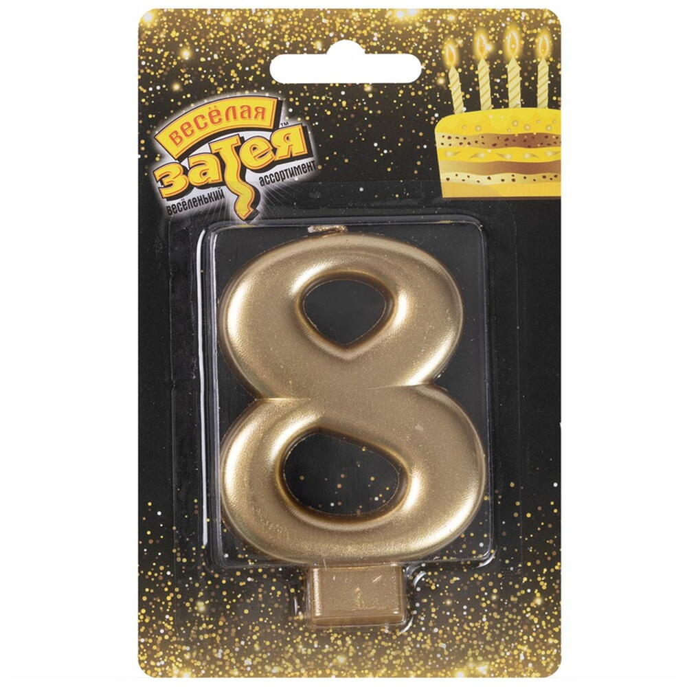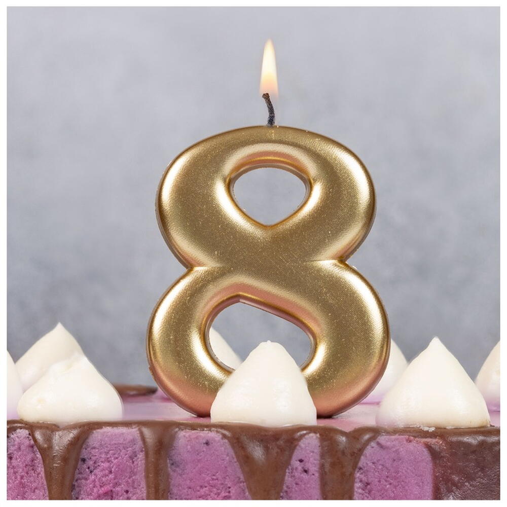 Декоративное украшение стола. Золотая Свеча в форме цифры 8. Отличное решение для декорирования торта, десерта ко дню рождения или юбилею.