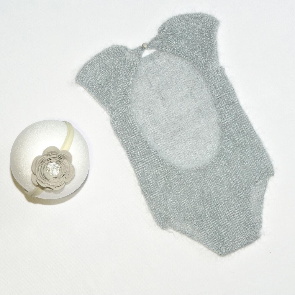 Боди ручной работы с вырезом на спине из самого мягкого кид-мохера, который только можно найти! Пряжа обработана по специальной плазменной технологии, не пилингуется, не колется и не капризна в уходе, произведена в Германии, цвет " Серебряный браслет". Повязка на голову с цветком отлично дополнит образ. Ваша ангелочек будет прекрасен! Размер боди-4-8 мес. Длина 36 см., ширина 21 см. 72% Кид мохер, 28% Шёлк Ручная стирка, сушка в горизонтальном положении.