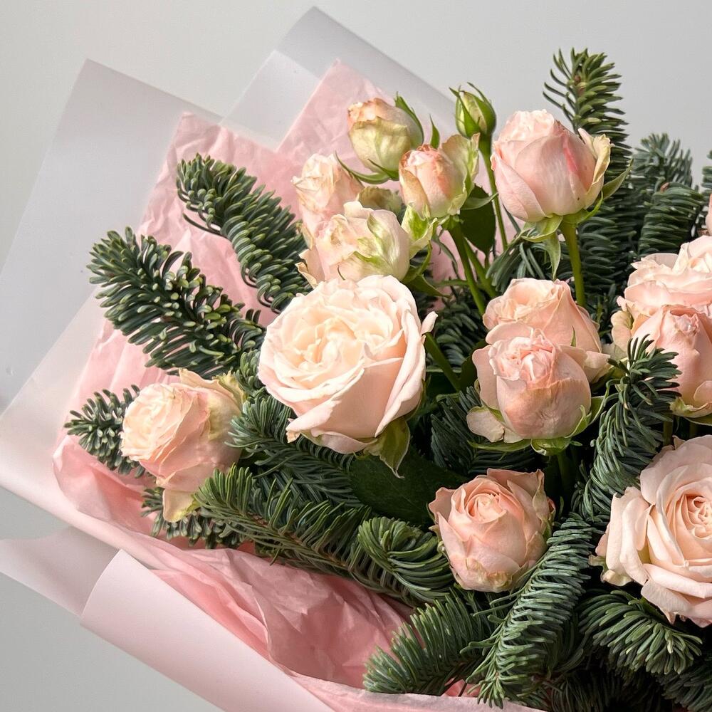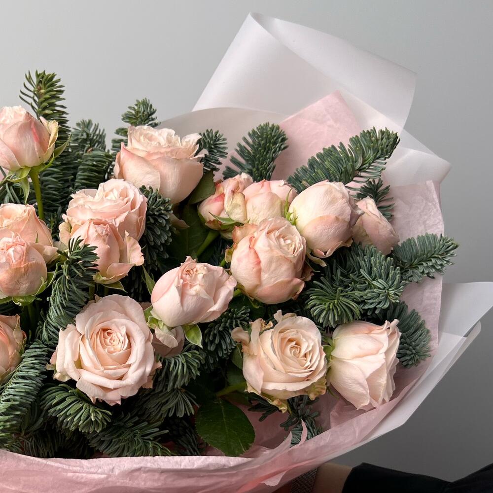 Букет из нежной пионовидной кустовой розы с ароматным нобилисом. Станет отличным подарком для любимой, мамы или бабушки по любому поводу🌸