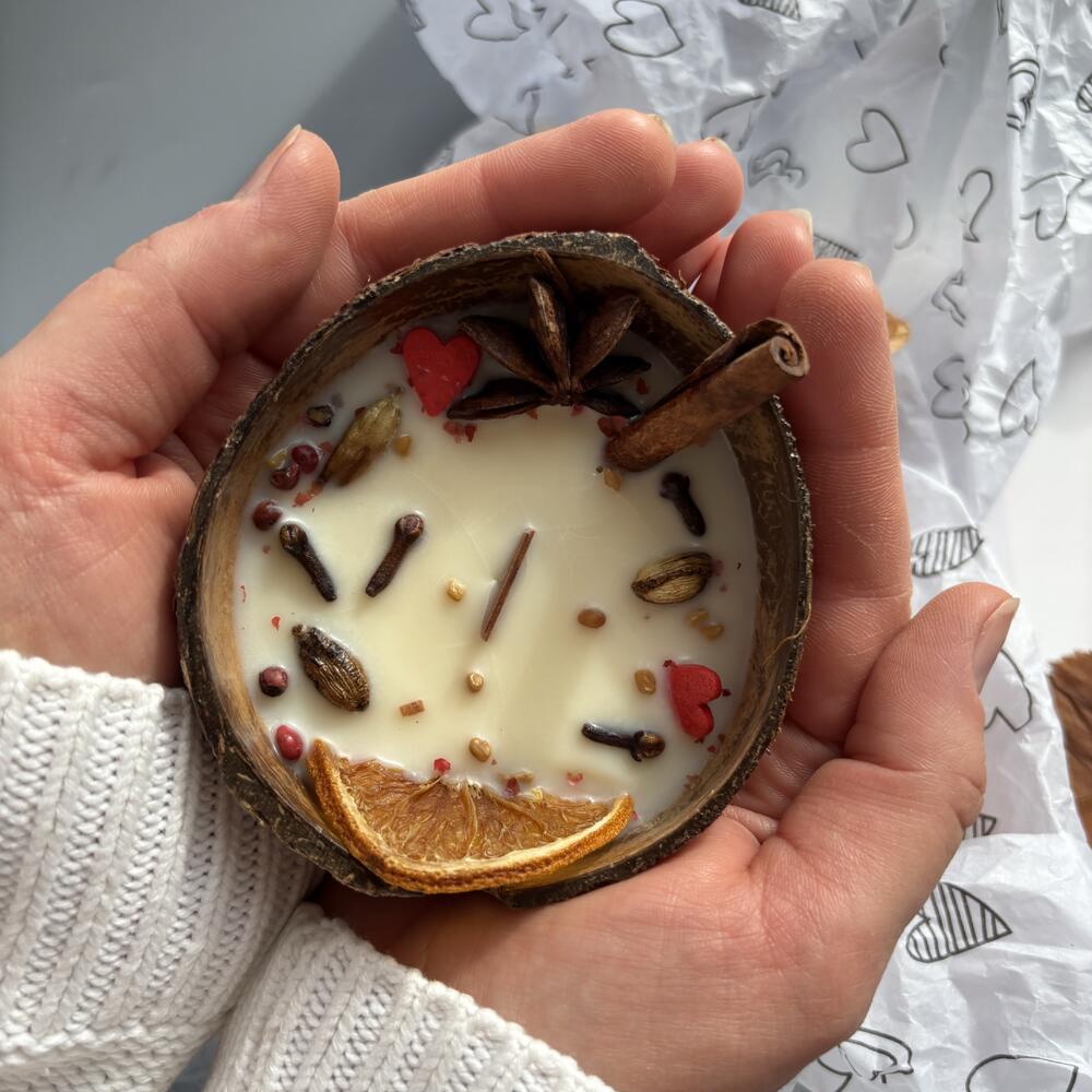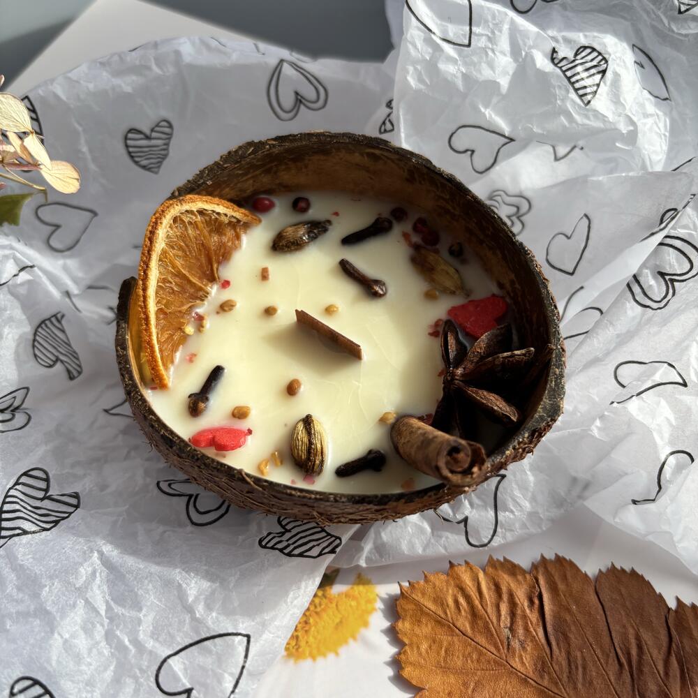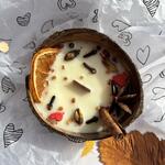 Свеча ароматическая в кокосе Глинтвейн согреет вас пламенем свеча и шепотом потрескивания фитиля