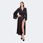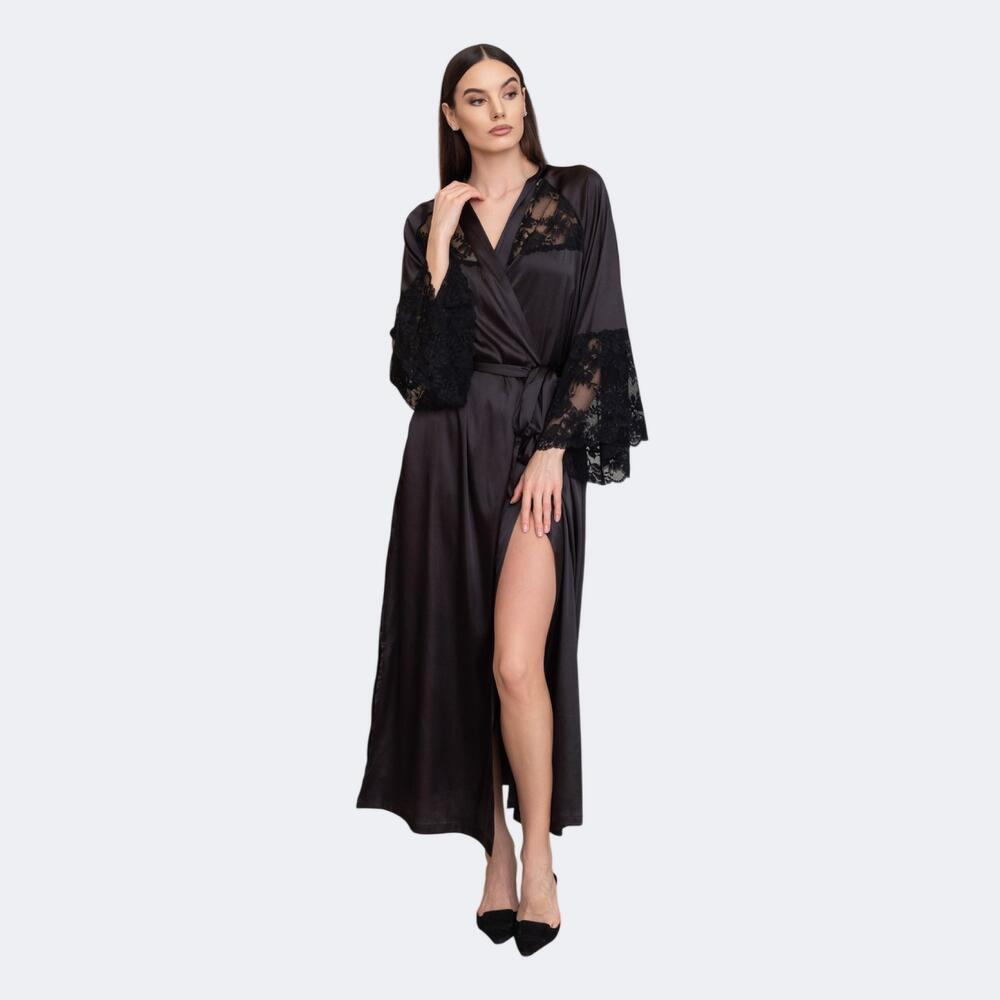 Чёрный длинный халат из натурального шёлка Adelina 2XL/3XL(р52-56)