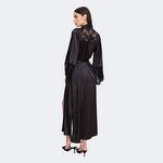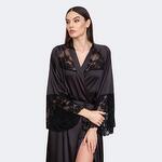 Длинный запашной халат Mia-Amore с широкими рукавами, выполнен из однотонного смесового шелка и дополнен кружевными вставками, которые расположены по верху и низу рукавов. По бокам модели обработаны карманы. Состав: 70% натуральный шёлк, 25% полиэстер, 5% эластан Размер 2XL/3XL, российский размер 54-58
