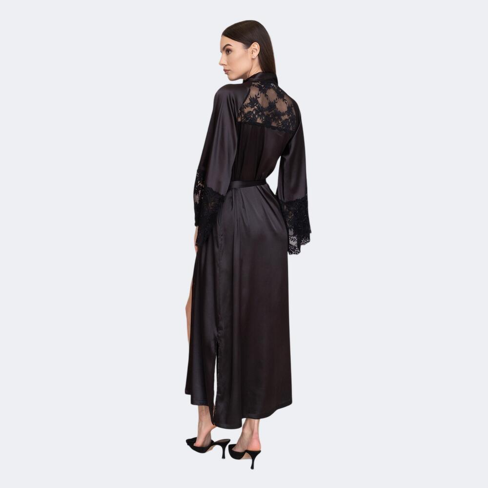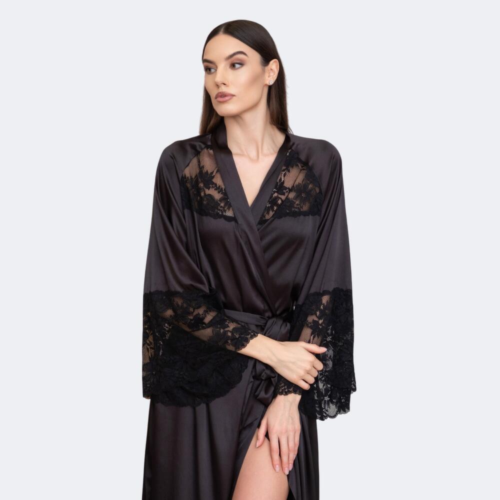 Чёрный длинный халат из натурального шёлка Adelina S/M