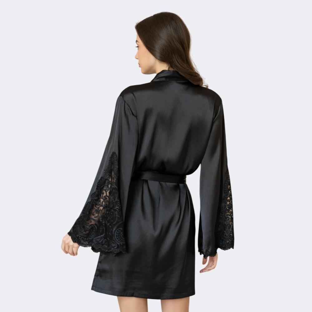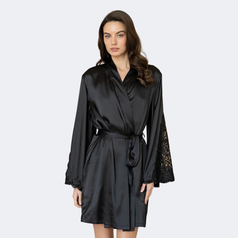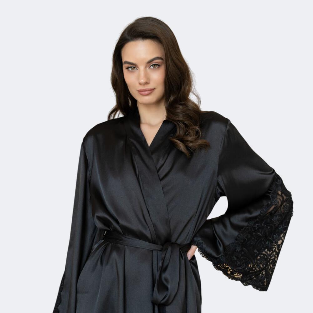 Чёрный халат из натурального шёлка Marjory S/M (42-46)