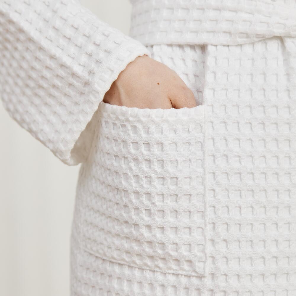 Халат от Lagom изготовлен из турецкого 100% хлопка. Плотность вафельного полотна 320 гр/м. Уникальное рельефное плетение делает халат одновременно прочным и мягким. Изделие приятное к телу, отлично впитывает влагу и быстро сохнет. Халат свободного кроя, с карманами. На запах. Пояс в комплекте. Идеально подходит для бани, сауны, бассейна, спа. Халат после первой стирки дает усадку 3-4 %. Для более точного выбора размера, смотрите размерную сетку. Доступные к заказу размеры: 42-44, 46-48, 50-52. Перед заказом уточните наличие товара на складе.