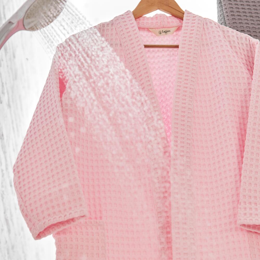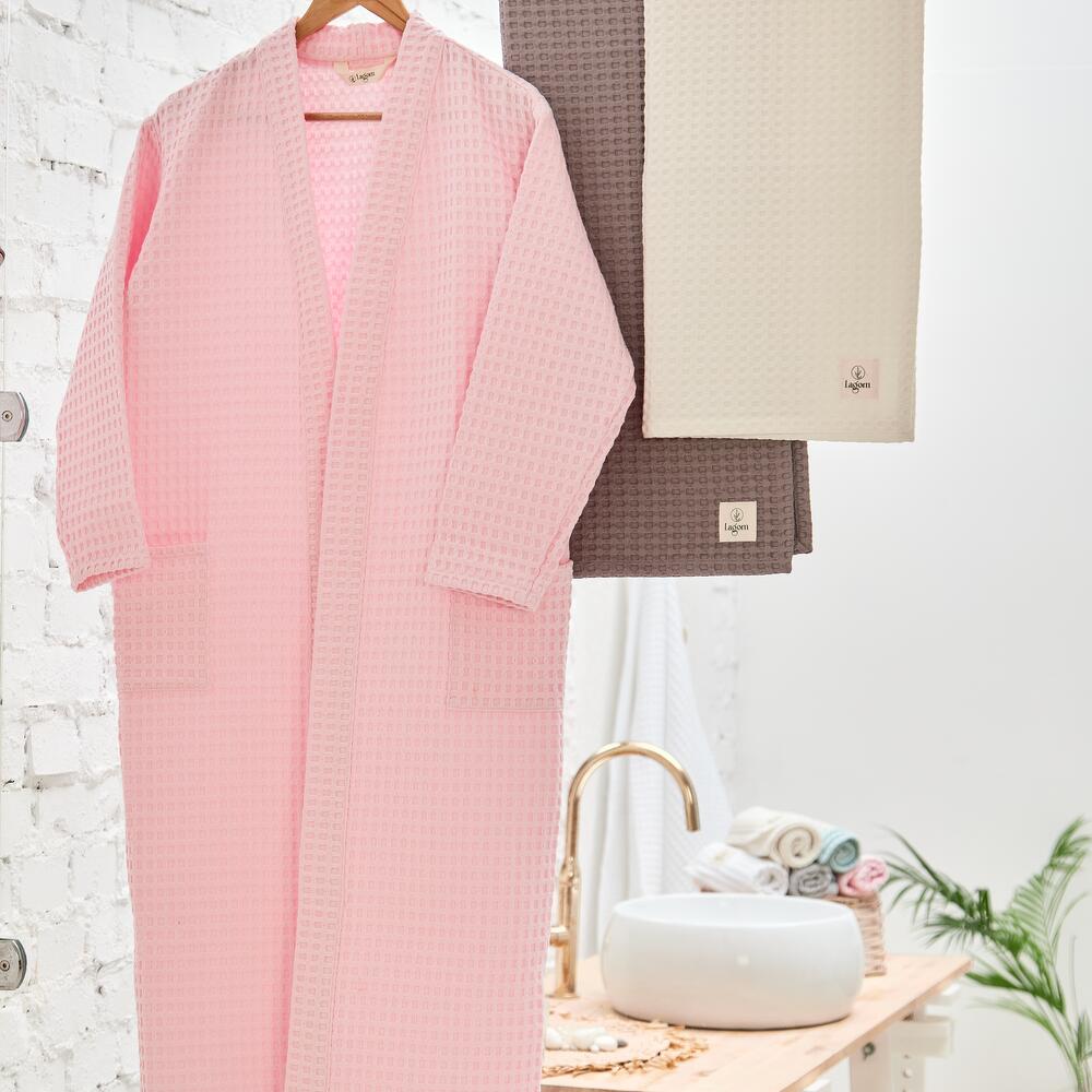 Халат вафельный, банный, хлопок, розовый