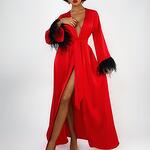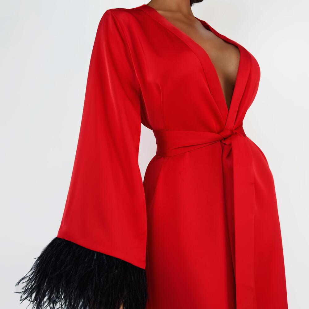 Халат женский с перьями "Красный"