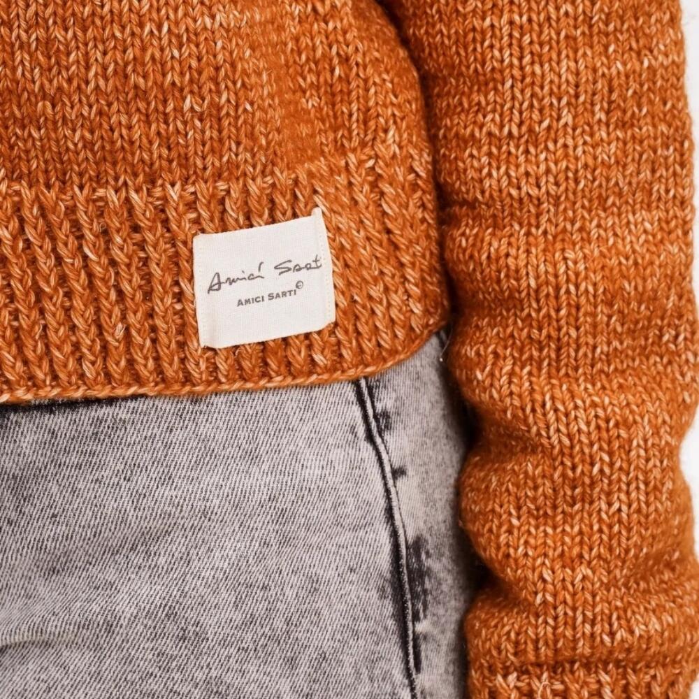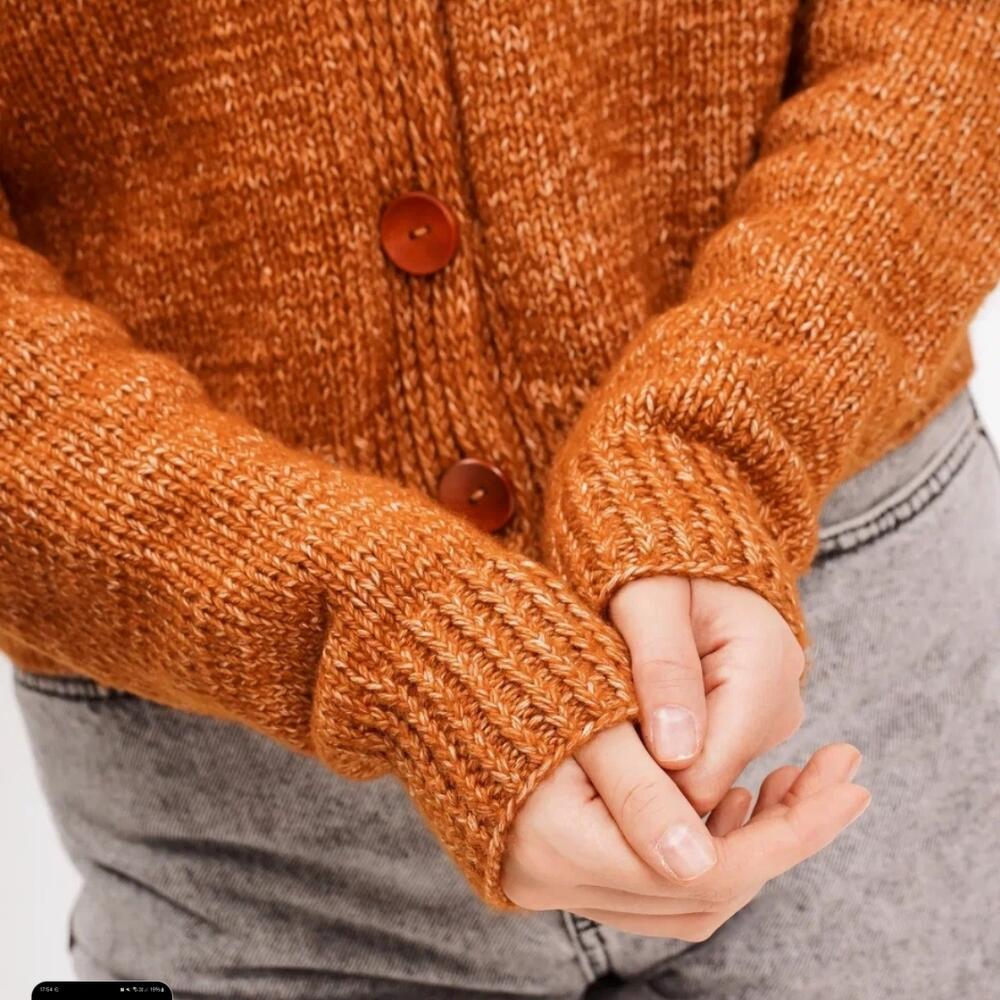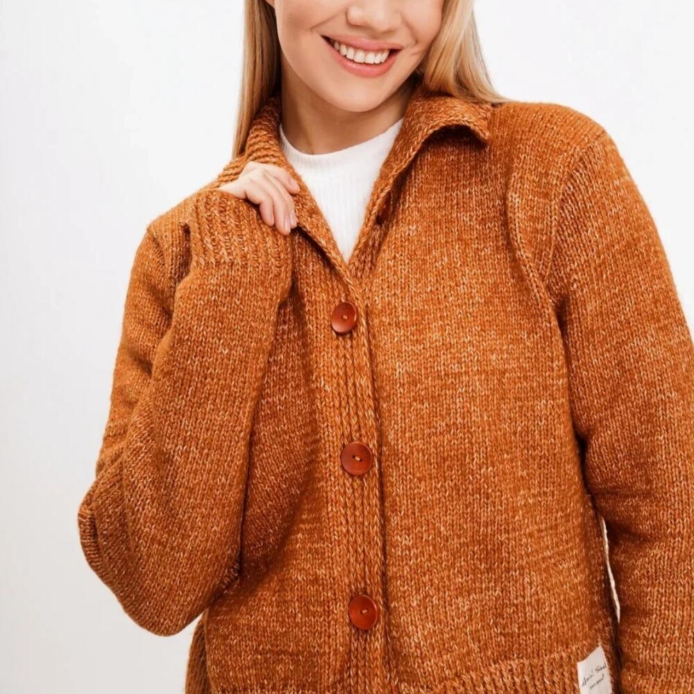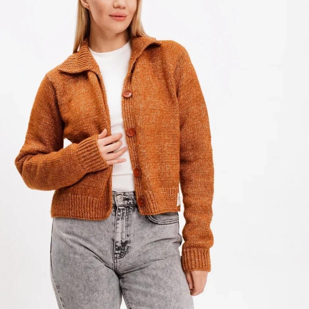 Укороченный кардиган в сливочно- апельсиновой гамме Creamy Rufous. Изделие связано из высококачественной хлопковой пряжи, выполнено в классическом стиле. С кардиганом идеально сочетаются бежевые брюки-клеш, бриджи, бермуды, зауженные джинсы или удлиненные шорты с отворотами. Размер 42-44