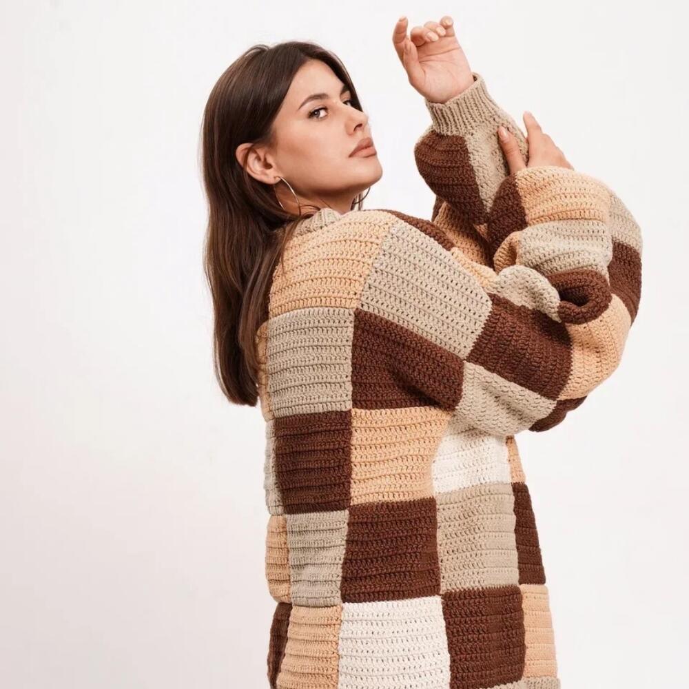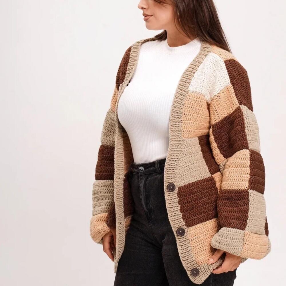 Кардиган Amici Sarti ручной вязки CheckMate. Выполнен из смеси хлопка и акрила, что обеспечивает комфорт и долговечность изделия. Застежка на пуговицах обеспечивает удобство и простоту использования. Размер 48-50