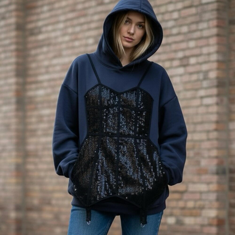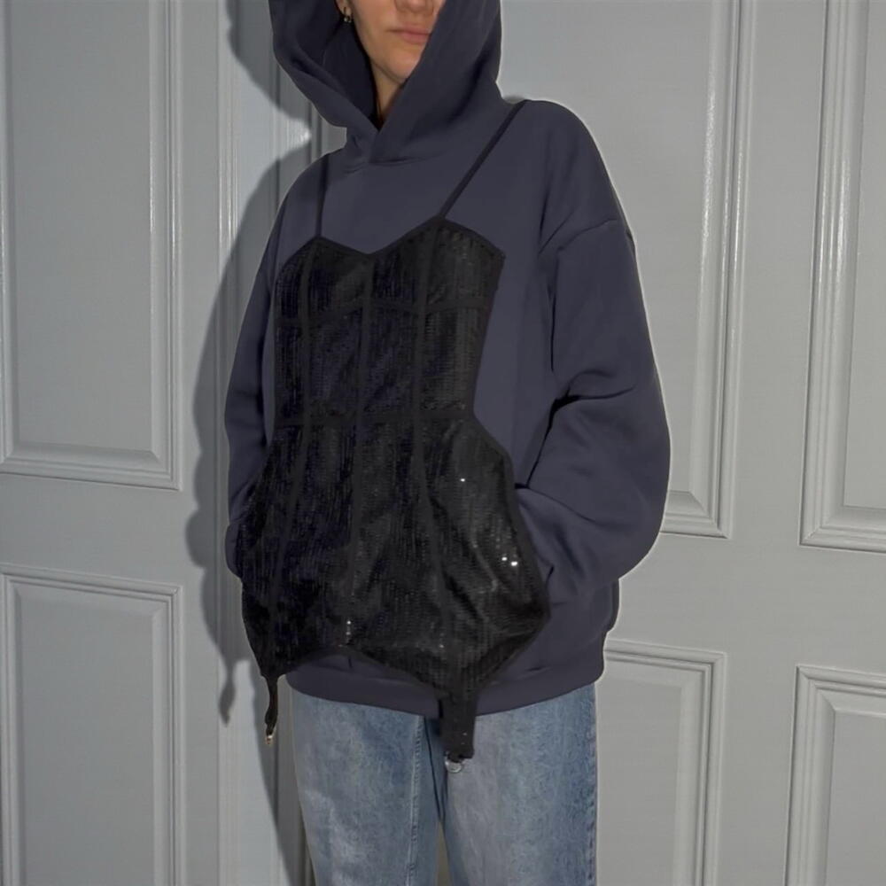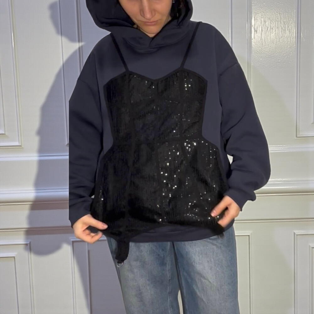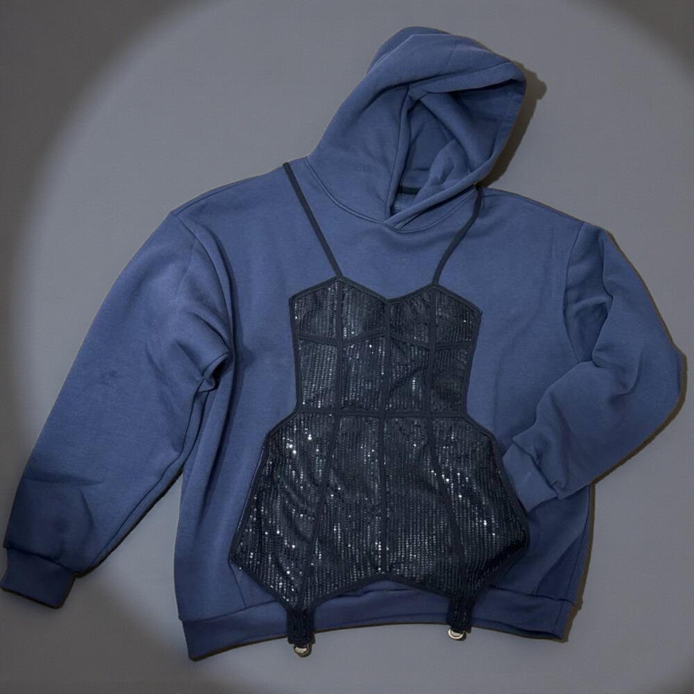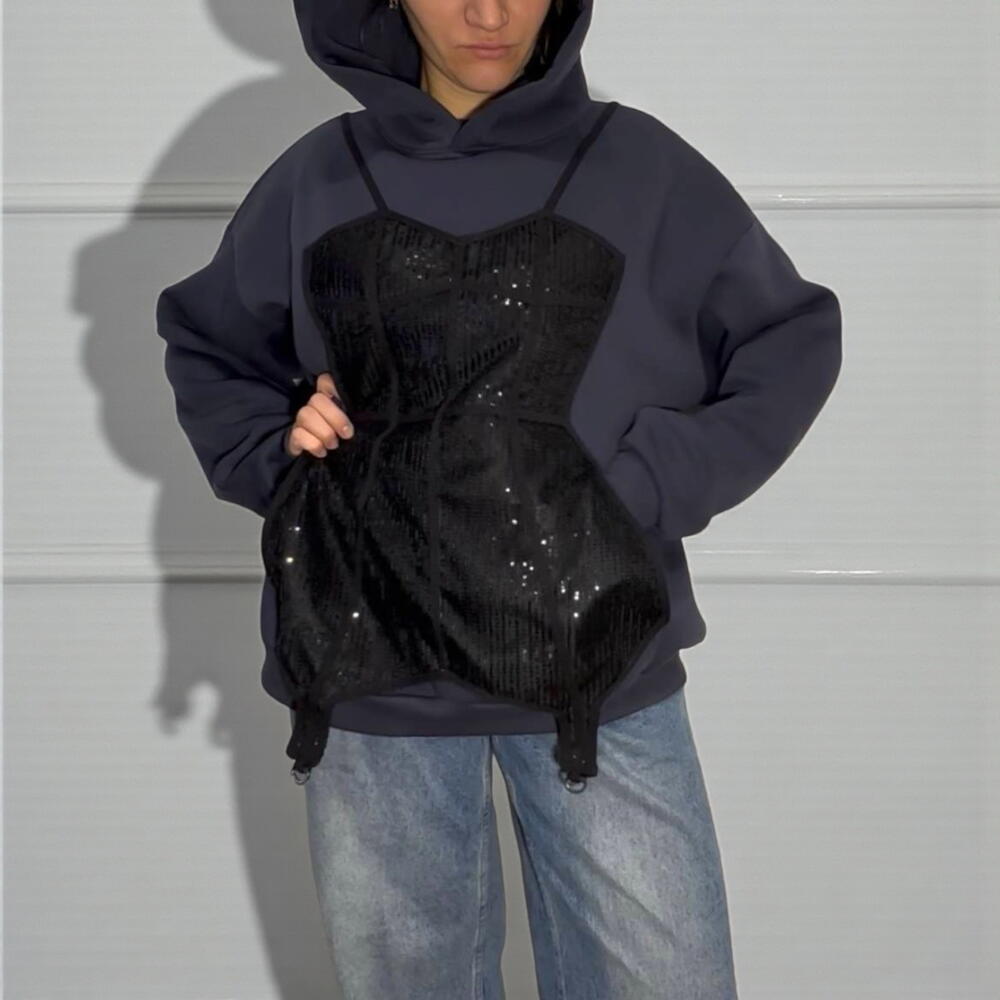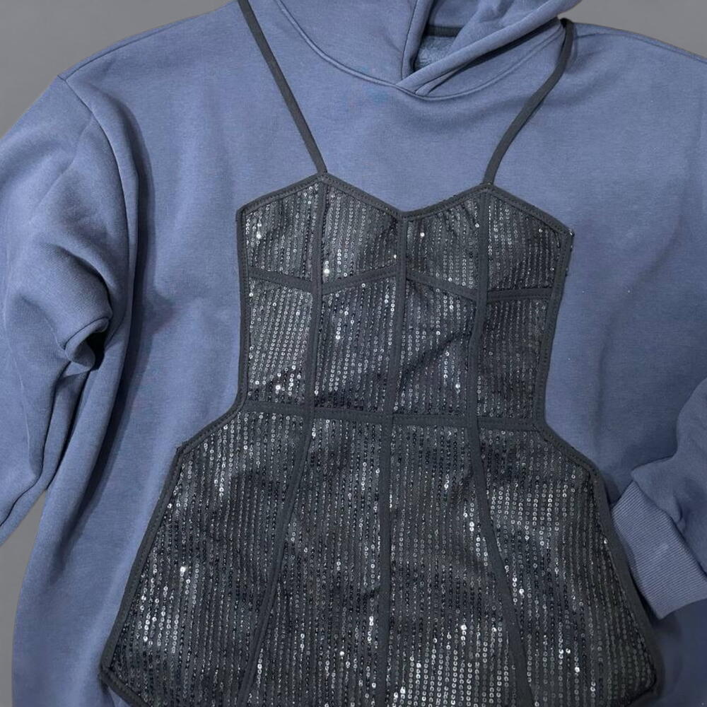 Комфорт с характером. Худи с аппликацией «корсет». Мягко, тепло, необычно. Изготовление под заказ. 5 рабочих дней