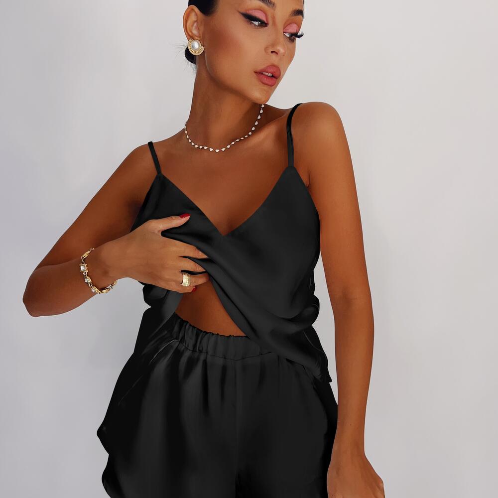 Изящный женский костюм из натурального 100% тенселя, воздухопроницаемый, не вызывает раздражений, тактильная комфортность от прикосновения. Состоит из топа и шортиков. Топ прямого кроя с V-образным вырезом, который всегда на пике популярности, делает визуально длинной шею, выгодно подчеркивает несомненные достоинства. На тонких регулируемых бретельках. Легкие короткие шортики с запахом, на мягкой резинке, без карманов. Идеальный вариант не только для сна, но и для домашнего отдыха!