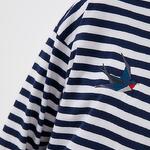 Тельняшка выполнена из бережного хлопка по принципу "полоска к полосочке". Изделие свободного кроя Oversize из 100%-го хлопка. Вышивка: Ласточка Материал: хлопок Для кого: Женщинам Доступные размеры: ONE SIZE