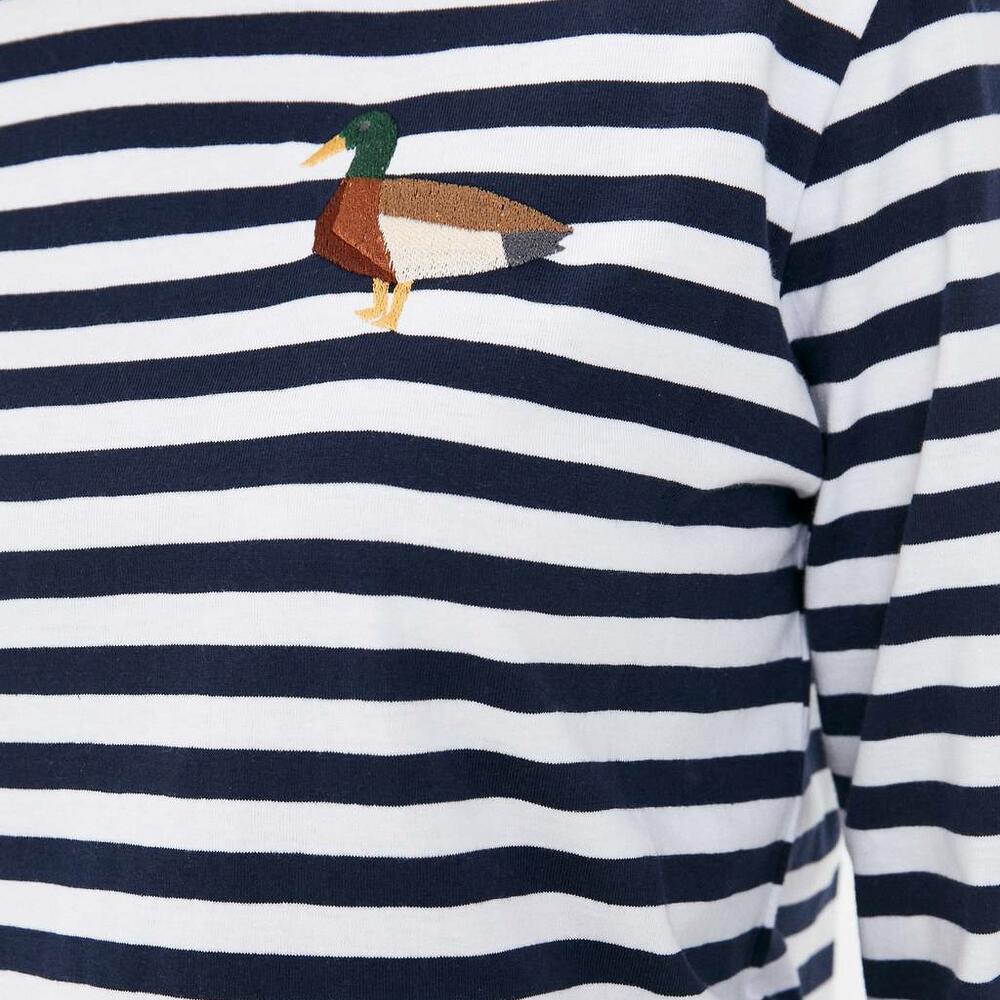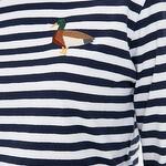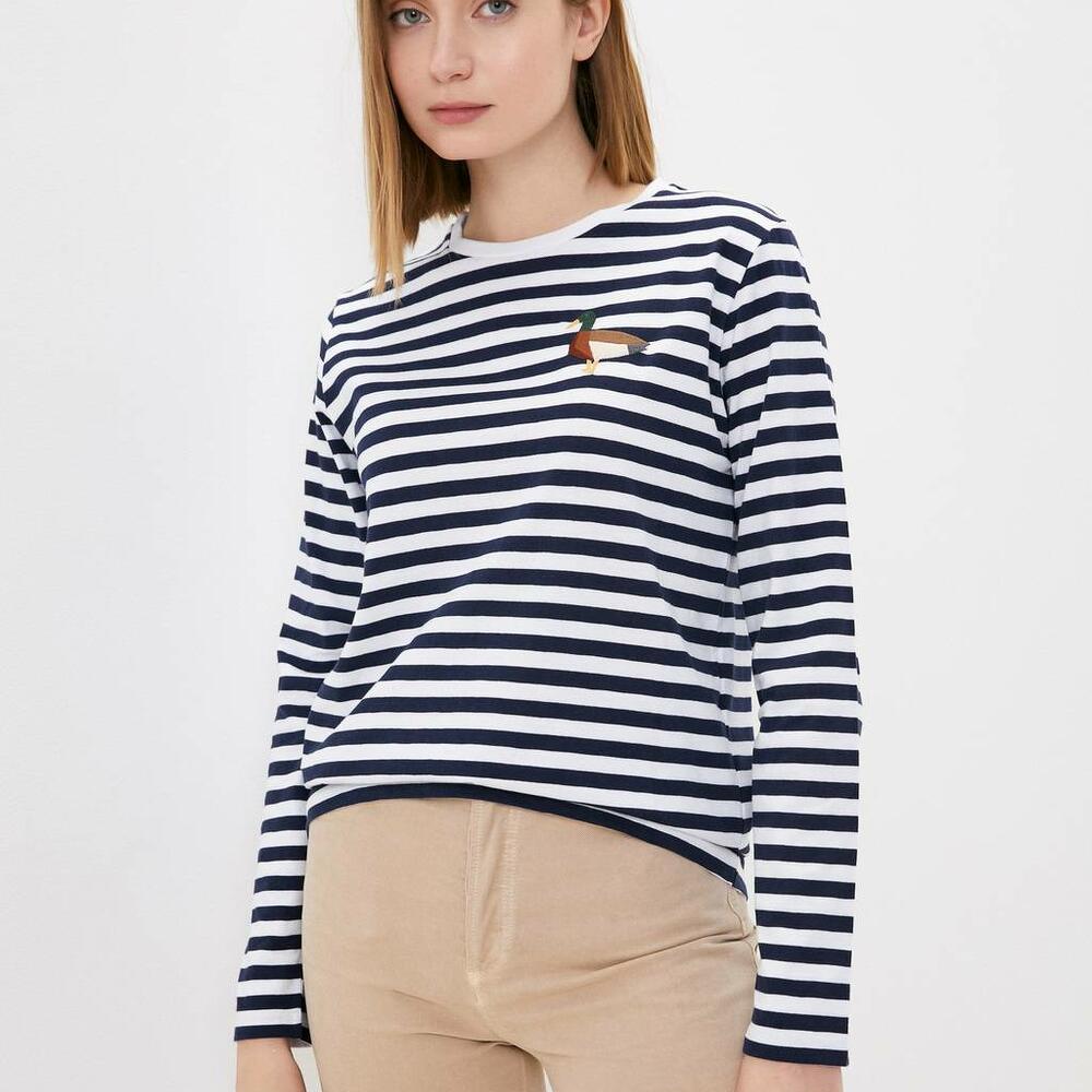 Тельняшка выполнена из бережного хлопка по принципу "полоска к полосочке". Прямой силуэт даёт возможность носить изделие как на высокой посадке, так и навыпуск, создавая классический образ для базового гардероба. Авторская вышивка смотрится ярко и гармонично на фоне сине-белых полосок морячки. Вышивка: Селезень Материал: хлопок Для кого: Женщинам Доступные размеры: S, M, L, XL