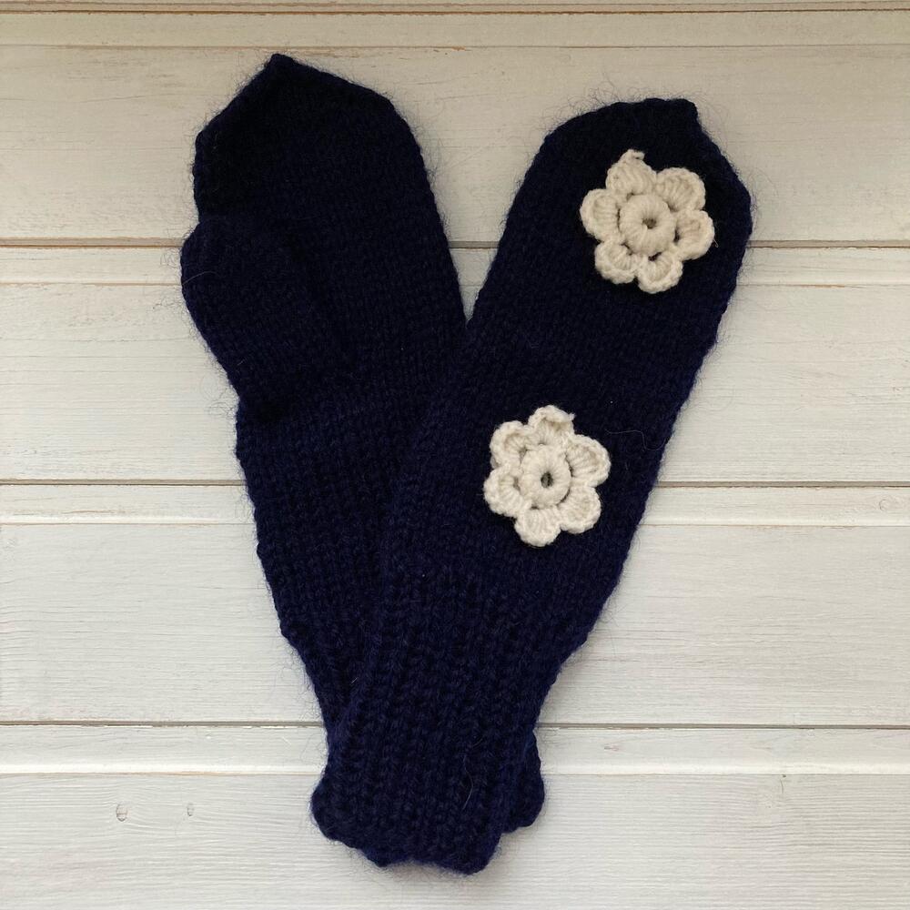Варежки вязаные тёмно-синие