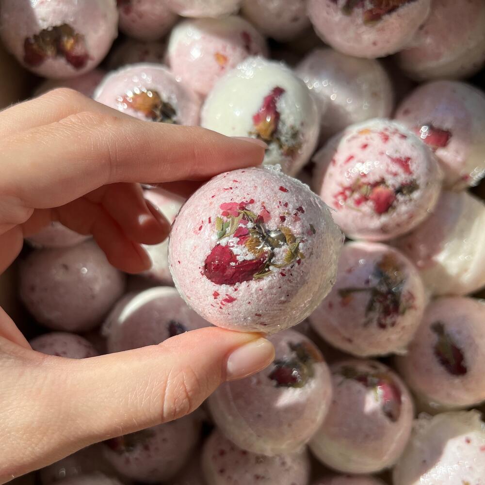 Натуральная бомбочка с розой Натуральная бомбочка с лавандой Натуральная бомбочка с жасмином Натуральная бомбочка с мятой Натуральная бомбочка с шафраном