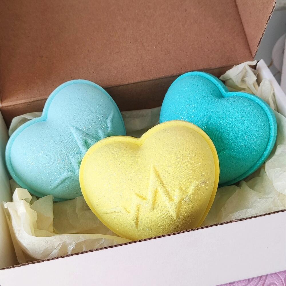 Набор из 3 бомбочек сердечек разного цвета. Цвета рандомные. Применение: наполнить ванну тёплой водой, поместить бомбочку на поверхность воды, дождаться полного растворения. Принимать ванну 15-20 минут. Ополоснуть тело тёплой водой. Хранить вдали от влаги и прямых солнечных лучей. Не рекомендуется детям младше 3-х лет и лицам с индивидуальной непереносимостью компонентов.
