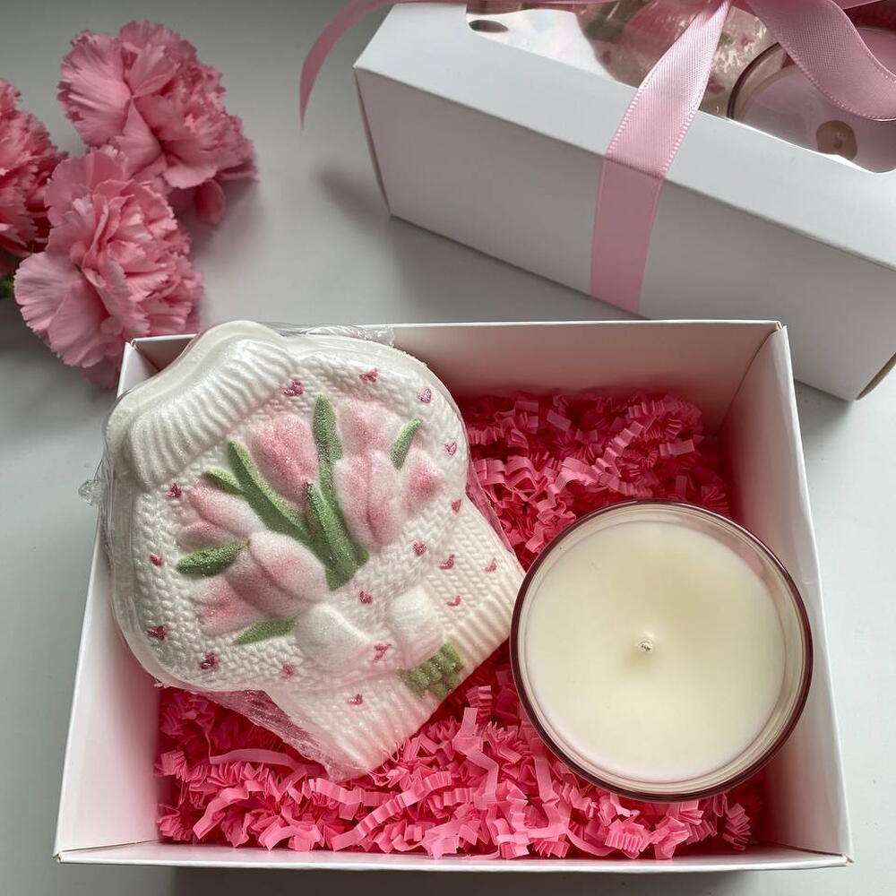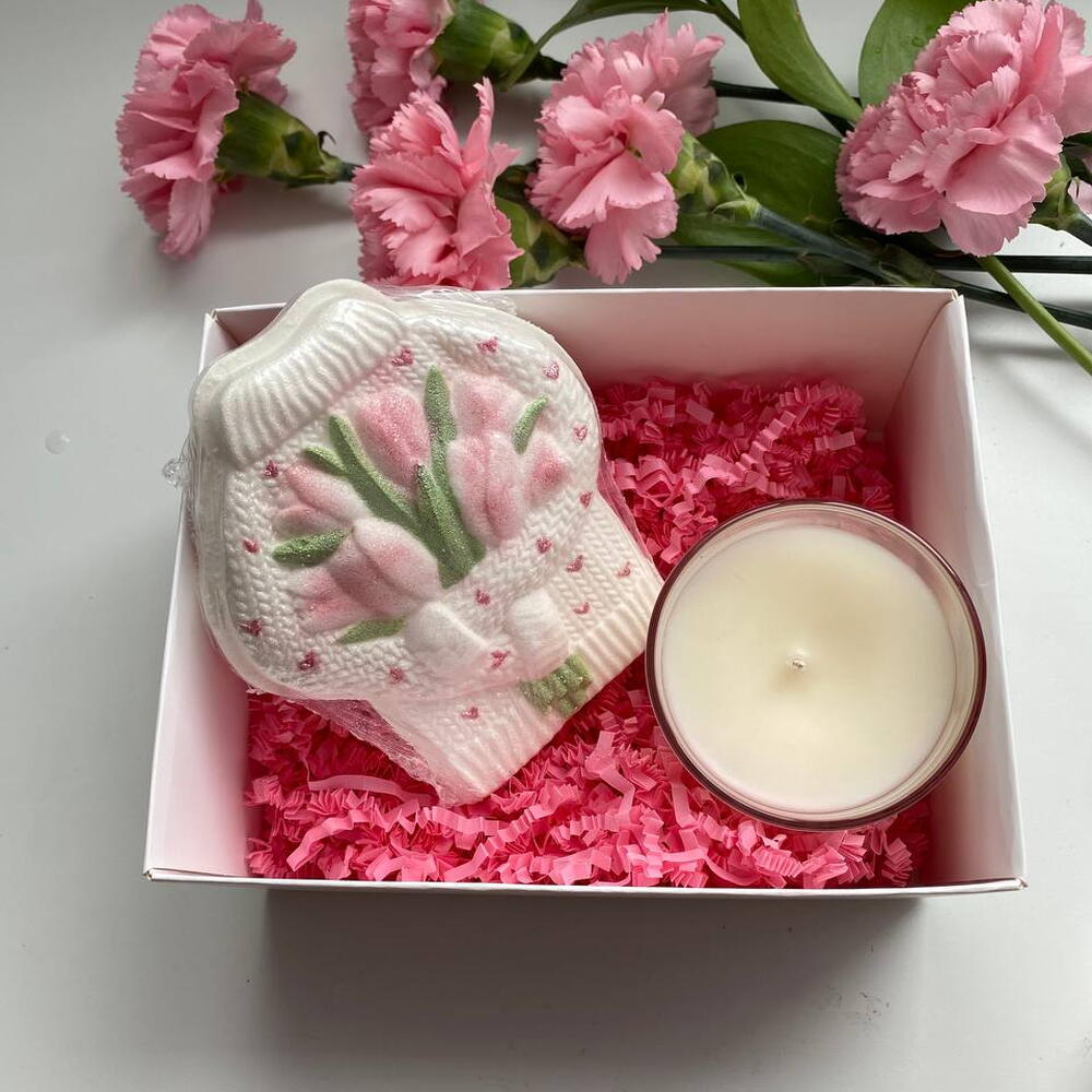 Подарочный набор к 8 марта: свеча + бомбочка для ванны