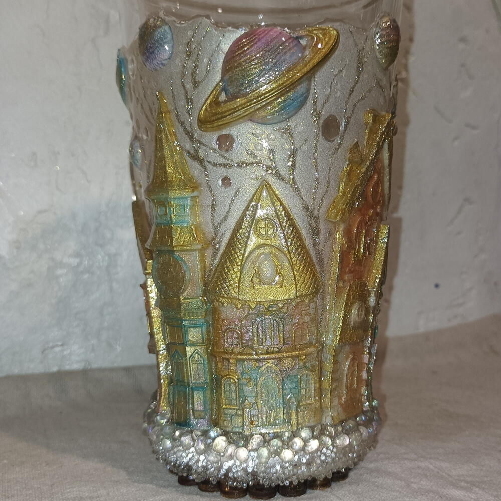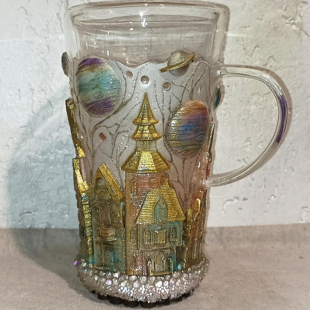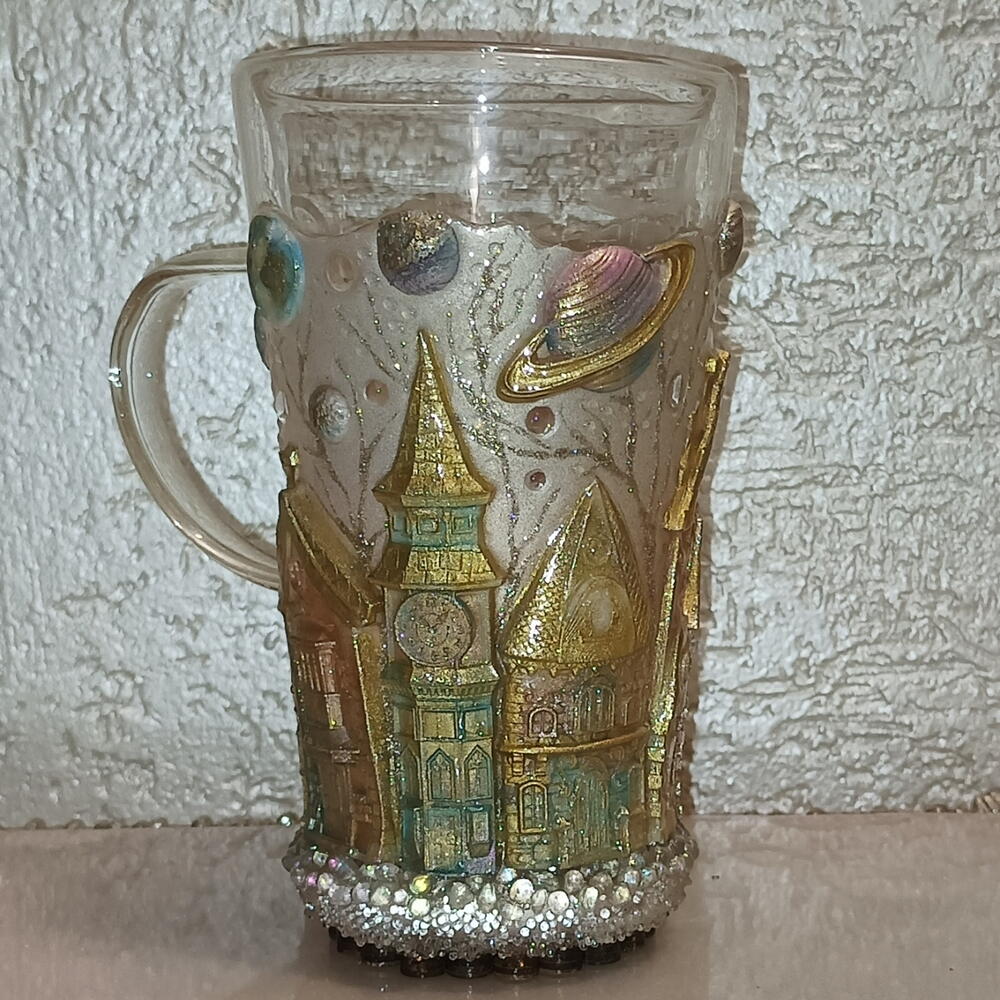 Искристая, нежная, волшебная кружка, для горячего чая, кофе. Усыпана аура кварцем, который благотворно влияет на жизнь, здоровье, удачу. Чудесная вещица в подарок себе и близким, друзьям.