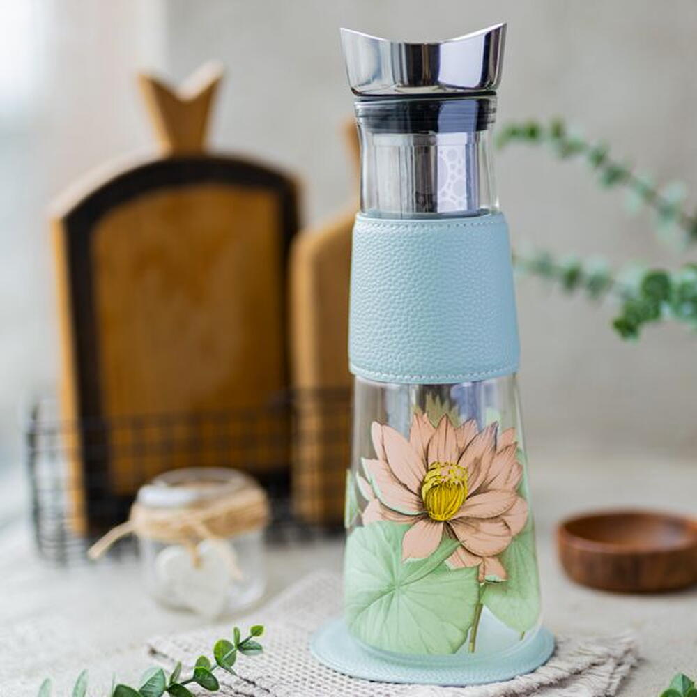 Универсальный кувшин с металлическим ситом для удобной и эффектной подачи напитков. Нежный цветочный дизайн поможет создать элегантную сервировку стола. Кувшин подходит для приготовления чая и кофе, в том числе и для холодного. Также хорошо подойдет для простой воды. Утонченный стеклянный кувшин изготовлен из термостойкого боросиликатного стекла, которое позволяет наслаждаться цветом настоя, очаровывает своим поразительным внешним видом. Красиво изогнутая двухкомпонентная крышка со встроенным фильтром может оставаться на кувшине во время заливания воды. Сито из нержавеющей стали с тщательно продуманной перфорацией подходит для приготовления различный напитков, не искажает их вкус, позволяет тщательно отфильтровывать заварку. Манжетка из искусственной кожи препятствует скольжению кувшина в руке и термическому ожогу. Для изготовления кувшина используются только безопасные материалы: они регулярно тестируются независимыми лабораториями и соответствуют действующим международным нормам и законам. Производитель заботливо относится к окружающей среде, не использует загрязняющие ее материалы. Материал: стекло, нержавеющая сталь, искусственная кожа. Объем: 1250 мл.