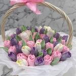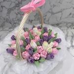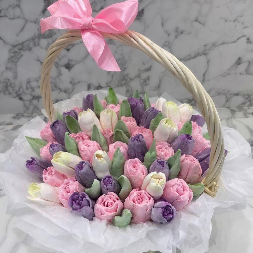 Шикарная объемная корзина с зефирными Тюльпанами, диаметром 25 см! На Свадьбу, Юбилей, День рождения, Дочери, Любимой, Маме