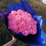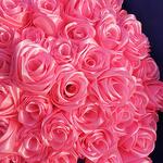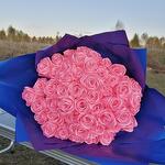 Букет из 51 розовой розы из атласных лент