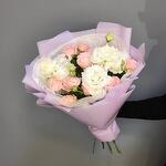 Eustoma - 5 Stk. Satinband - 1 Stk. Verpackung Design - 1 Stk. Strauchrose пионовидная - 4 Stk.