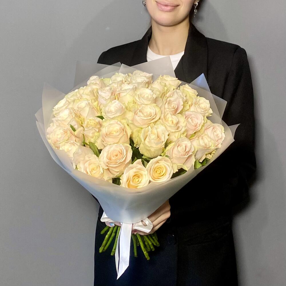АКЦИЯ! Монобукет 35 ванильных роз Шармант (40 см)